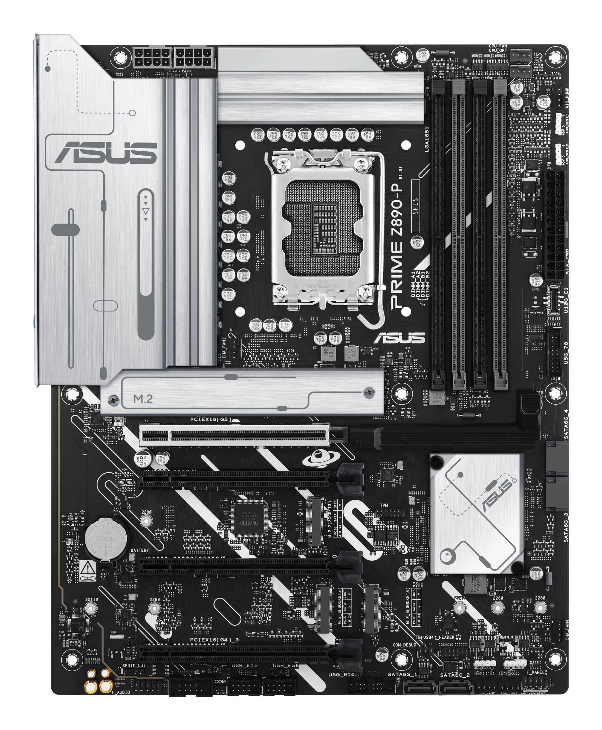 The PRIME Z890-P motherboard is engineered with multiple onboard heatsinks and an array of hybrid fan headers to help ensure your rig stays cool and stable under intense workloads.