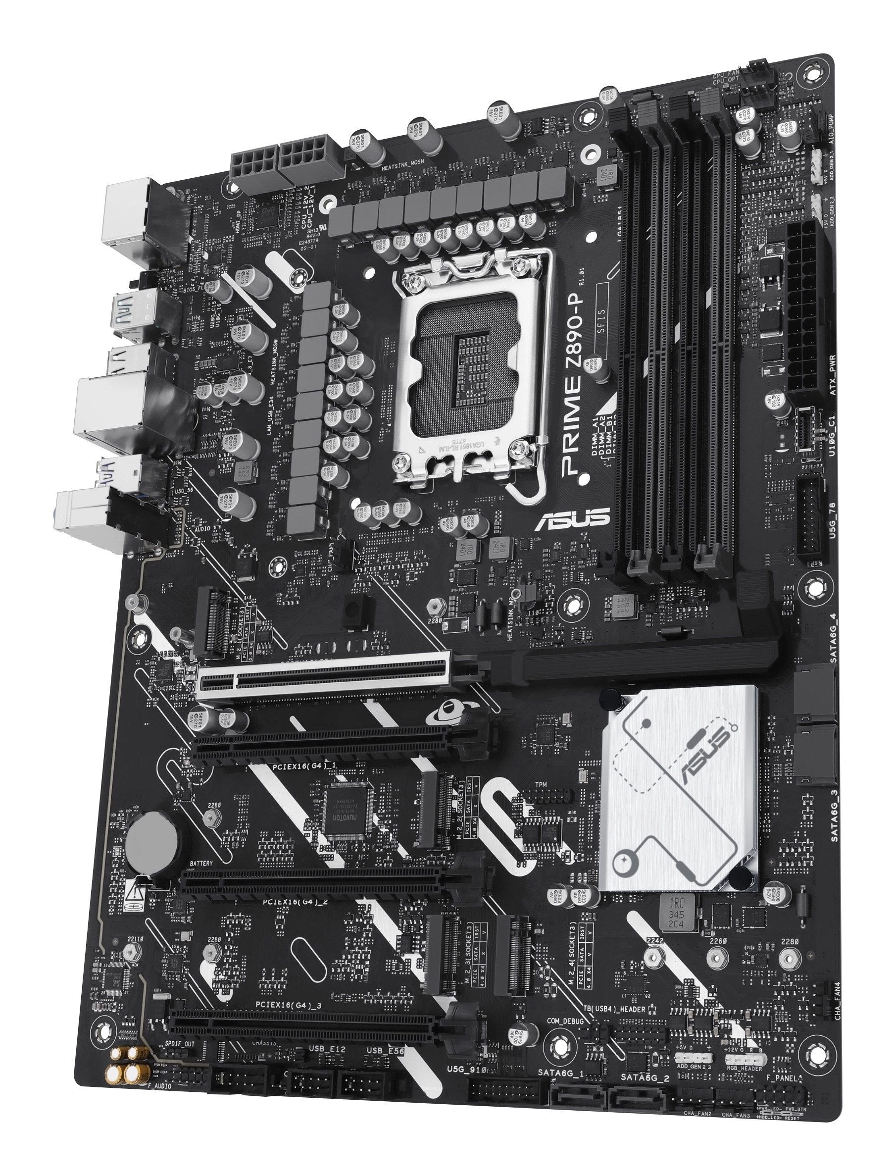 PRIME Z890-P offers a total of four M.2 slots, including one that supports data-transfer speeds of up to 128Gbps via PCIe 5.0, three that support 64Gbps via PCIe 4.0. This enables quicker boot-up and app load times with OS or application drives.4
