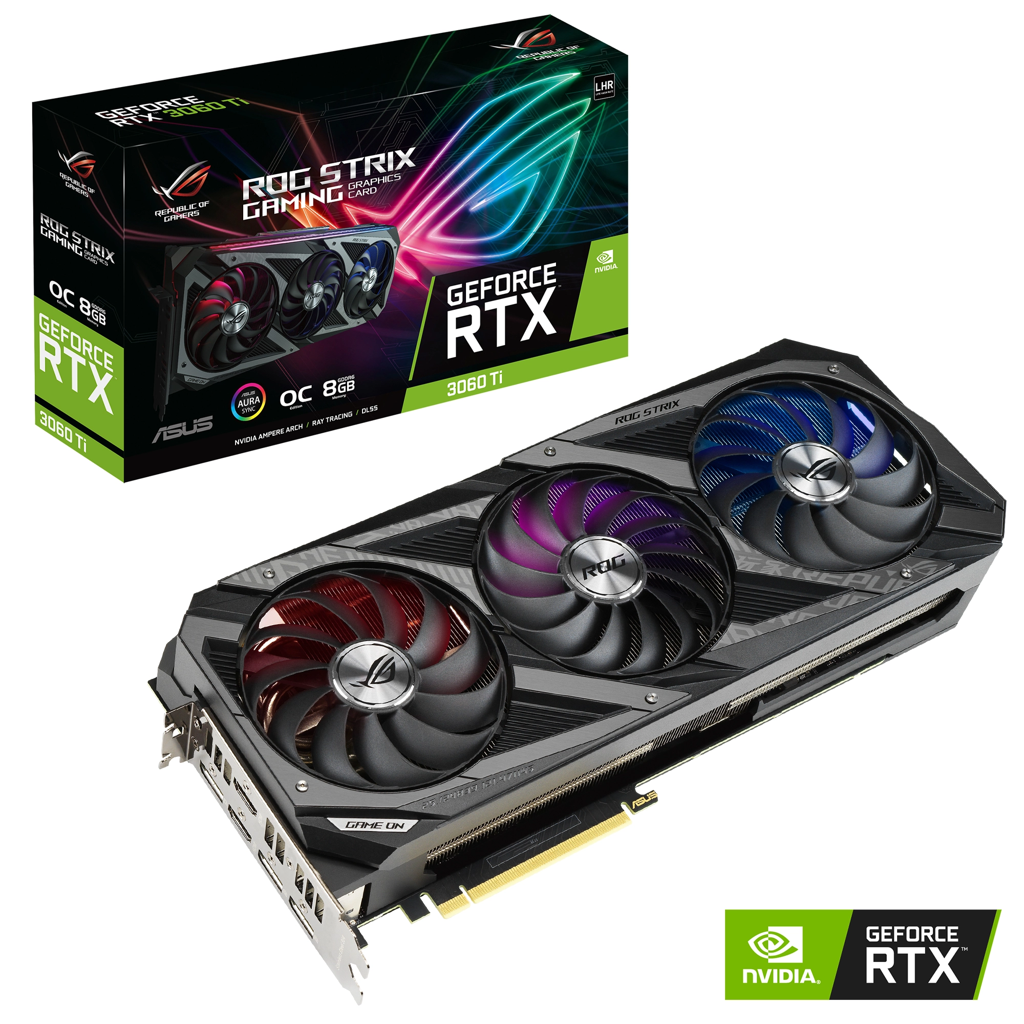 From top to bottom, the ROG Strix GeForce RTX™ 3060 Ti has been radically improved to accommodate the impressive new NVIDIA Ampere architecture and to deliver the next wave of gaming performance innovation to the market. A fresh design and more metal surrounds a grouping of Axial-tech fans. Last gen’s uniform fan layout has been usurped by a new rotation scheme and specialized roles for central and auxiliary fans. Below the blades, a larger, more impressive heatsink is ready for the most demanding thermal loads. The PCB has some new tricks up its sleeves, and even the backplate has received some performance-boosting changes. You've been waiting for the latest and greatest in graphics card design - and this is it.