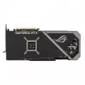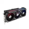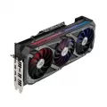 Careful attention has been paid to the front of the GPU, as it’s the most visible part of the card in typical configurations. A new addressable RGB element can be customized with Armoury Crate to create a uniform look along with other ROG components. To fulfill the power demands of the GeForce RTX 3060 Ti, two 8-pin power connectors are present, along with an onboard circuit that monitors PSU rail voltage. The circuit is fast enough to catch any transients that result in the rail voltage dropping too low. If that happens, a red LED will light up to indicate a power supply issue. The Strix’s reinforced metal frame is also visible here, adding a literal layer of durability.