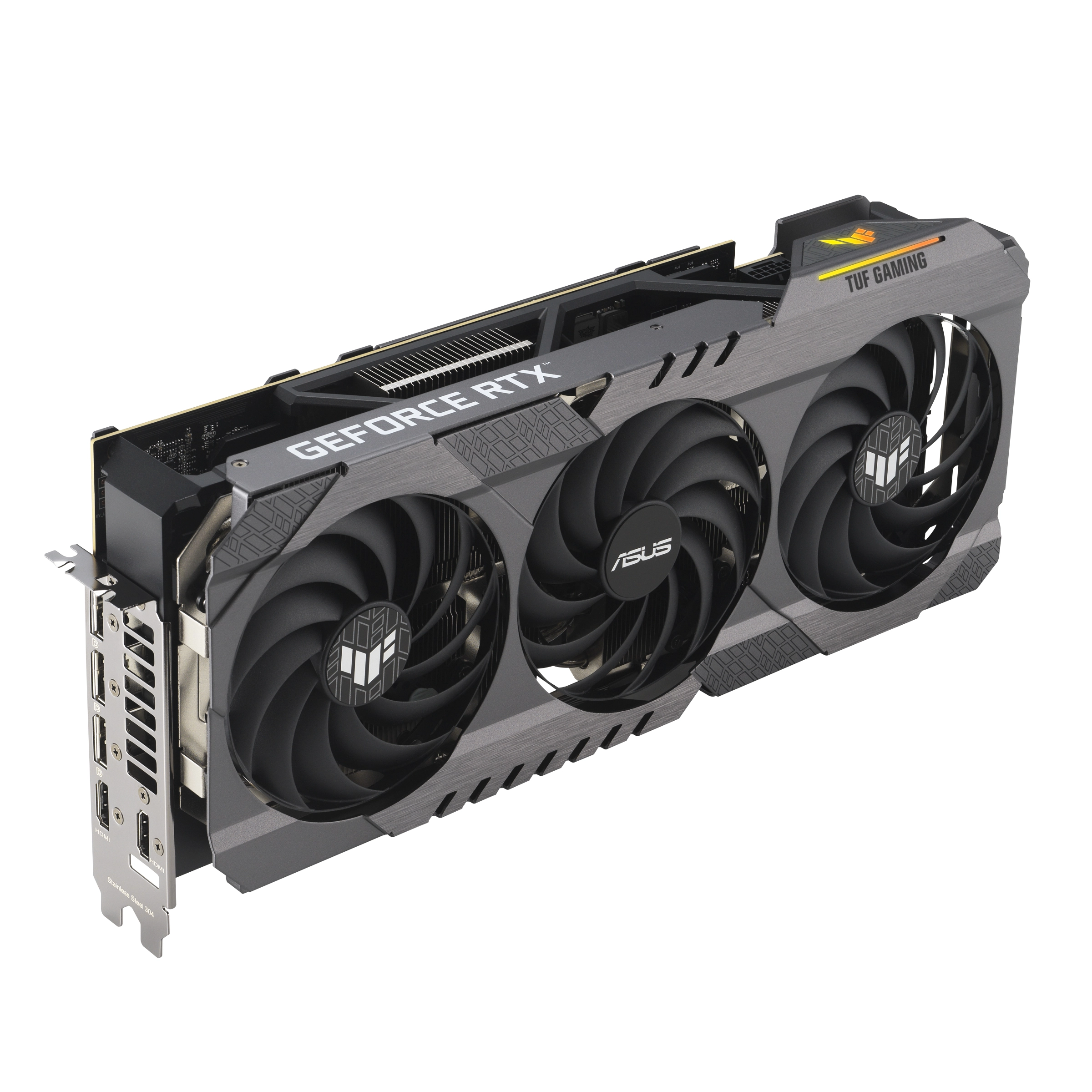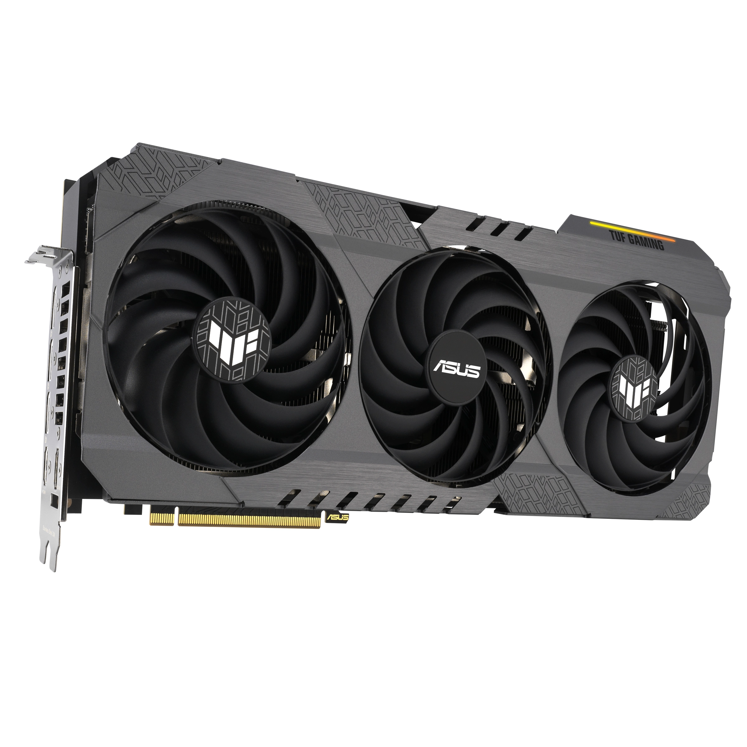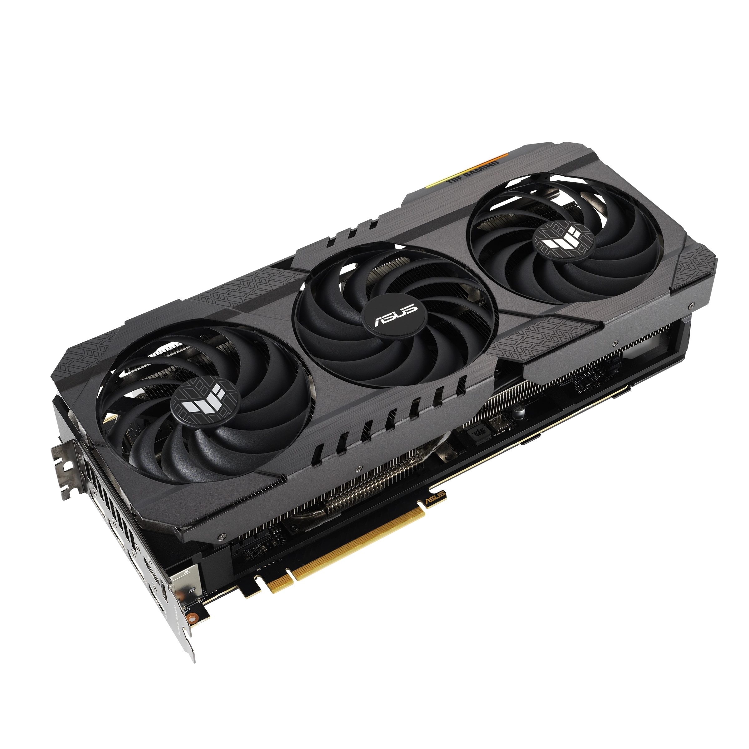 TUF Gaming cards leverage our tried-and-true Axial-tech fan design, with three fans working in tandem to satisfy the thermal demands of NVIDIA's new high-octane design. The fans rely on dual ball fan bearings to ensure consistent performance and increased longevity compared to sleeve bearings and other bearing types.