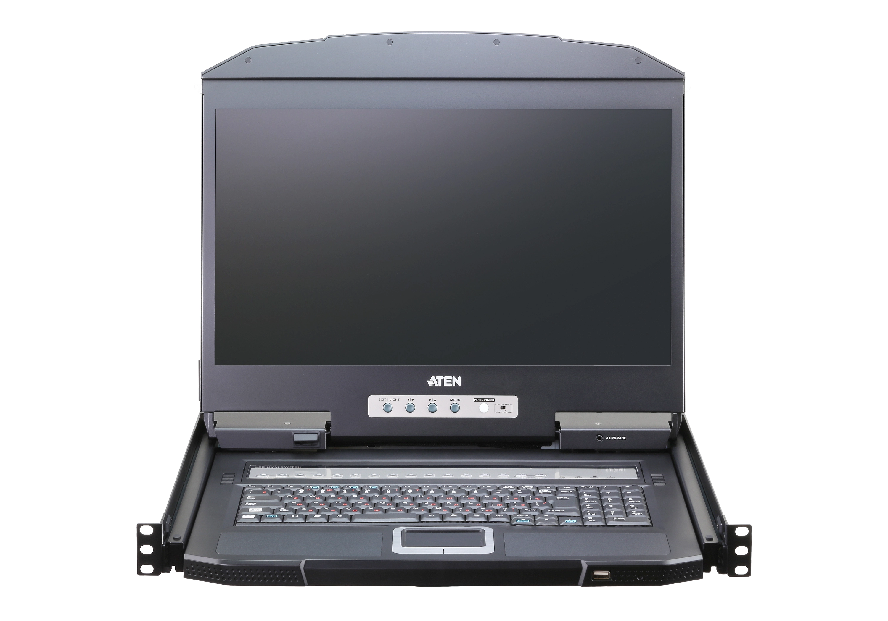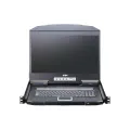 The ATEN CL3116 LCD KVM Switch offers a space-saving, streamlined approach to KVM switch technology by integrating a keyboard, 18.5" LED-backlit LCD monitor, and a touchpad in a 1U rack-mountable sliding housing. The short-depth design maximizes space utility for equipping rack-mounting devices in narrow spaces. In addition, its exclusive LED illumination light provides users with proper visibility when working in low-light conditions.