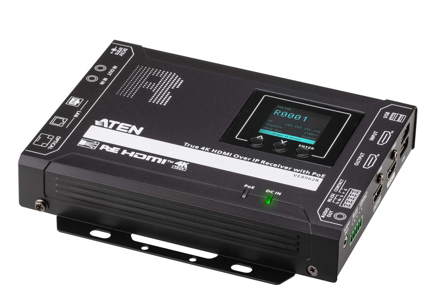 True 4K HDMI over IP Receiver with PoE USB Peripheral support and IR /RS-232 / Ethernet (WebGUI) Control and Daisy-Chainable