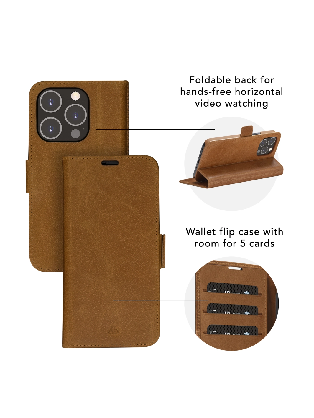 With the elegant and impact-protective Copenhagen wallet case, you will always have your phone and wallet with you. It's handcrafted from sustainably sourced full-grain leather that develops a beautiful patina with use and features a foldable back for hands-free horizontal video watching. Protect your phone and our planet with this slim and feature-rich case!