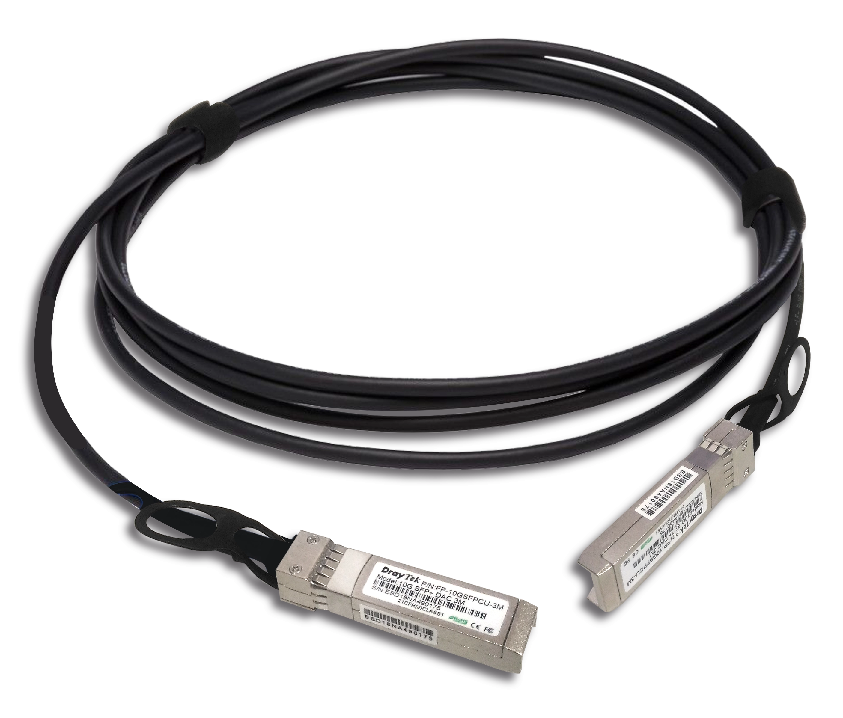 DAC kabel 10G SFP+ (Direct Attached Cable), 1 meter, ondersteunt zowel 10 Gbps als 1 Gbps (geschikt voor DrayTek switches en routers met SFP/SFP+ poorten)