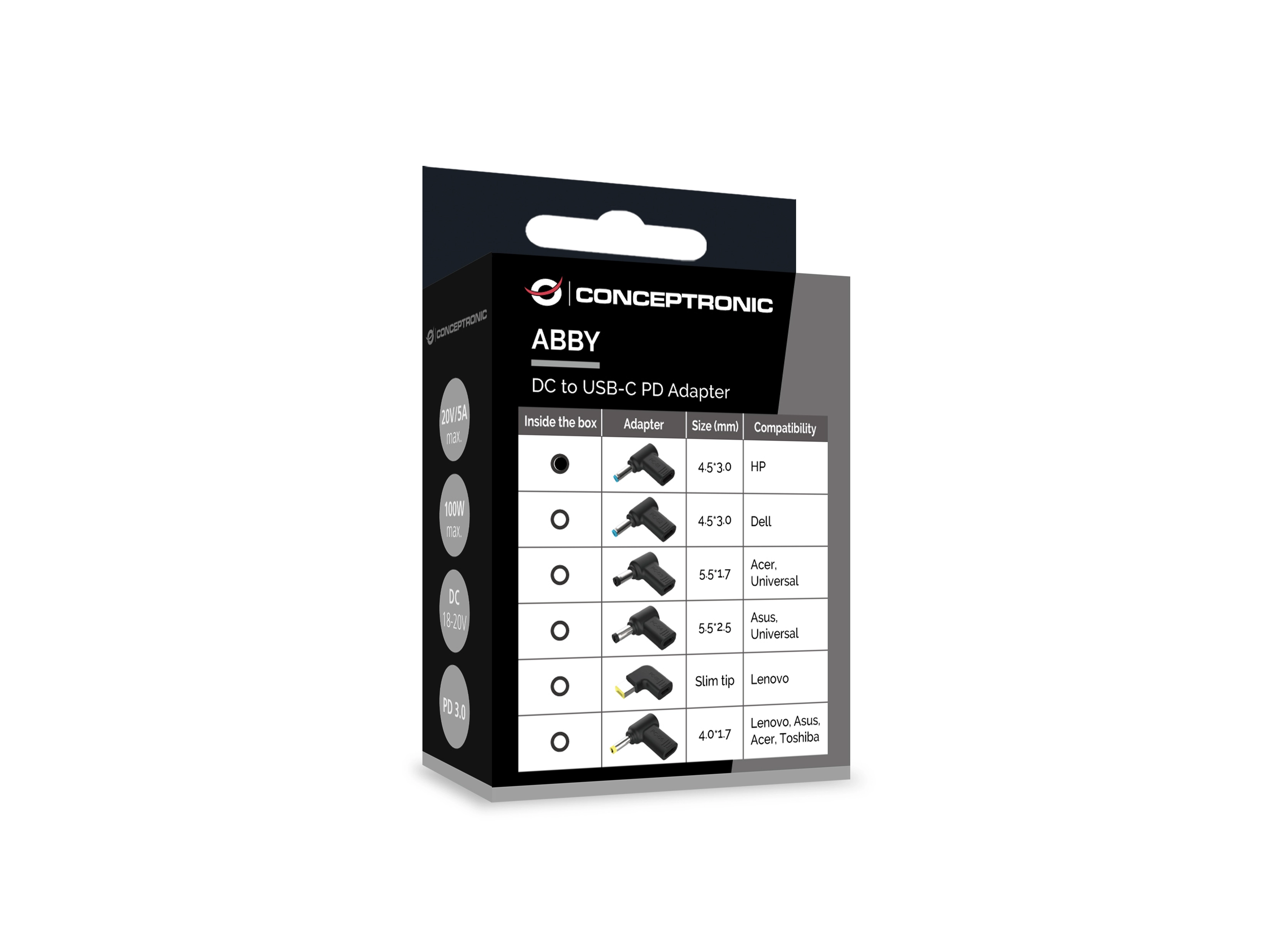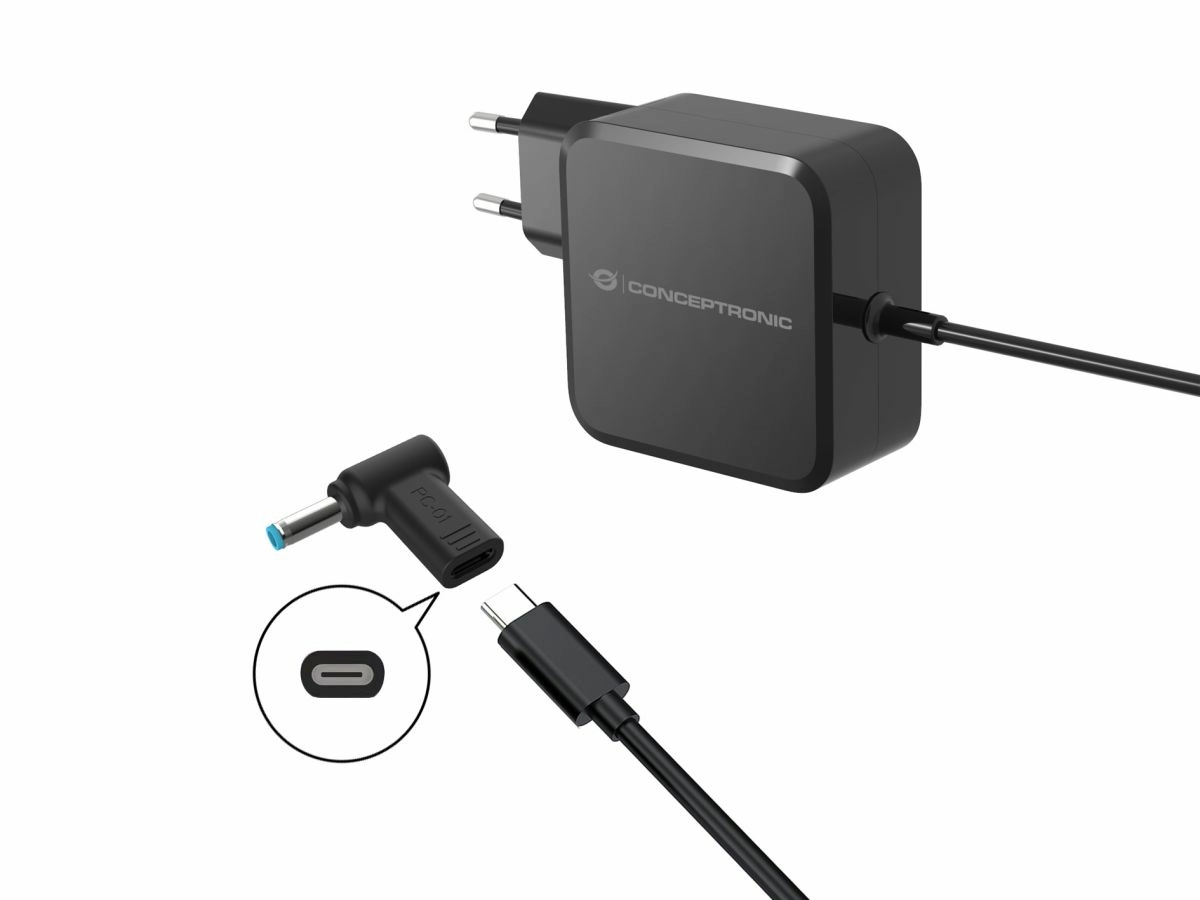 This DC to USB-C adapter is designed for use with a USB-C PD charger, enabling connection to an HP Laptop compatible with a 4.5x3.0mm DC connector.