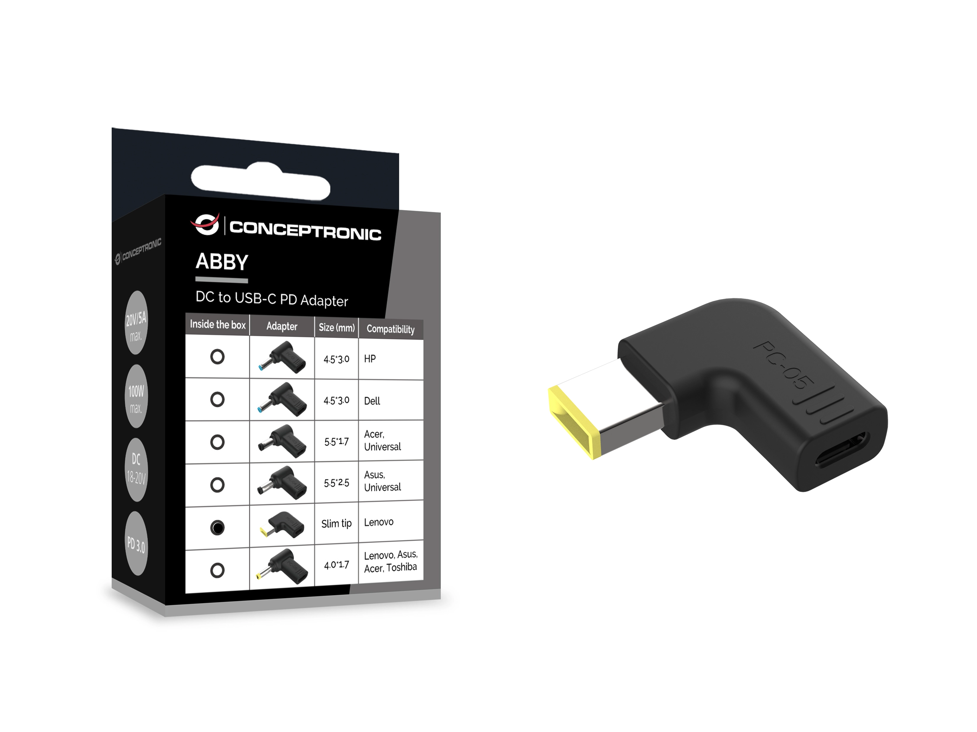 This DC to USB-C adapter is designed for use with a USB-C PD charger, enabling connection to a Lenovo Laptop compatible with a slim DC connector.