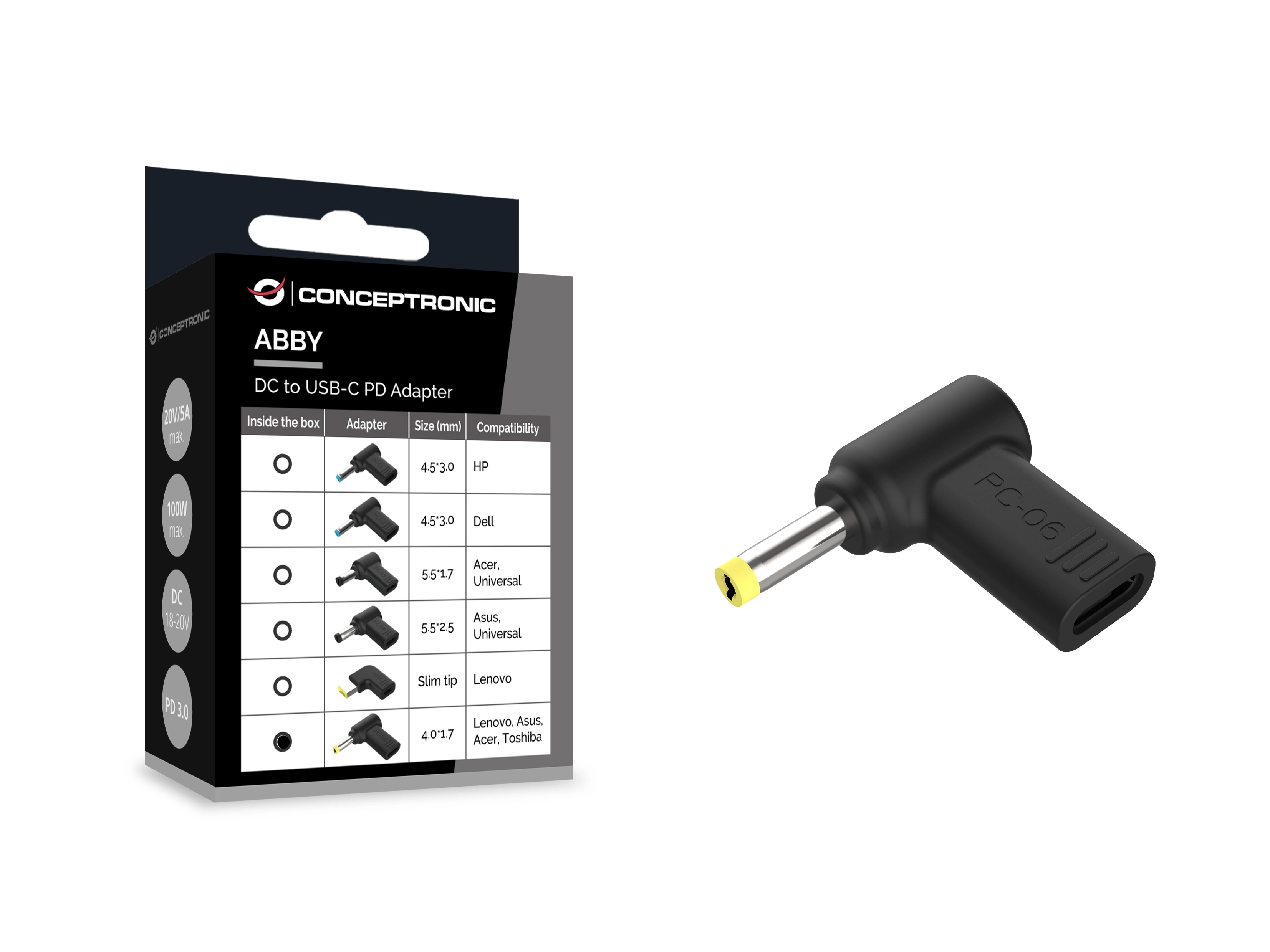 This DC to USB-C adapter is designed for use with a USB-C PD charger, enabling connection to a Lenovo/Asus/Acer/Toshiba Laptop compatible with a 4.0x1.7mm DC connector.