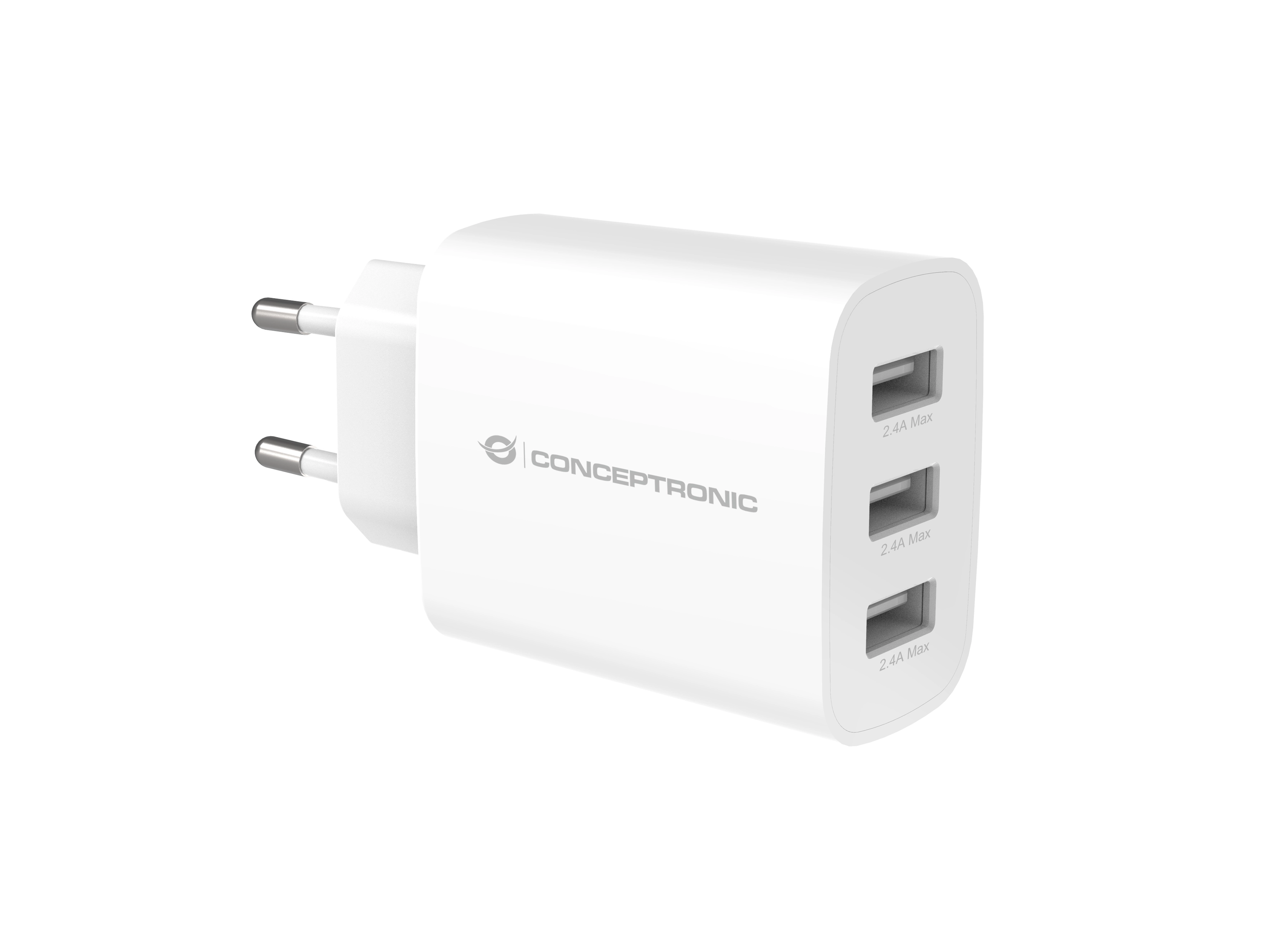 This charger features 3 dedicated USB-A ports, each providing DC 5.0V/2.4A, offering up to 30W of total power for high-speed charging of a wide range of devices with varying power requirements. It is designed with enhanced safety features, including built-in protections against overload, short circuiting, and overheating, ensuring the safety of both the charger and connected devices.