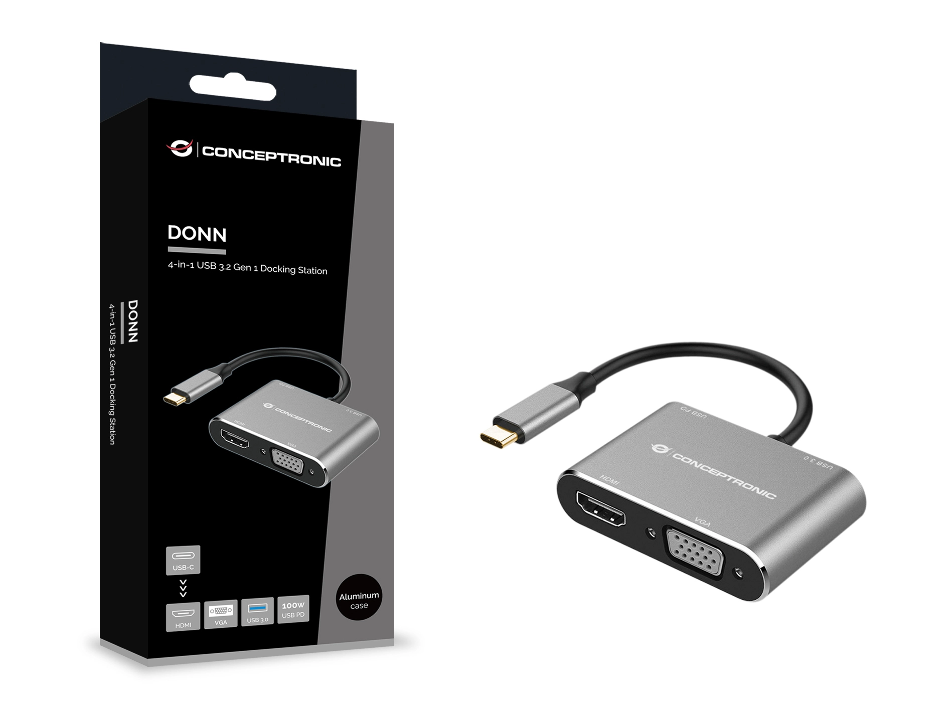 4-in-1 USB 3.2 Gen 1 Docking Station - HDMI - VGA - USB-A - 100W USB PD