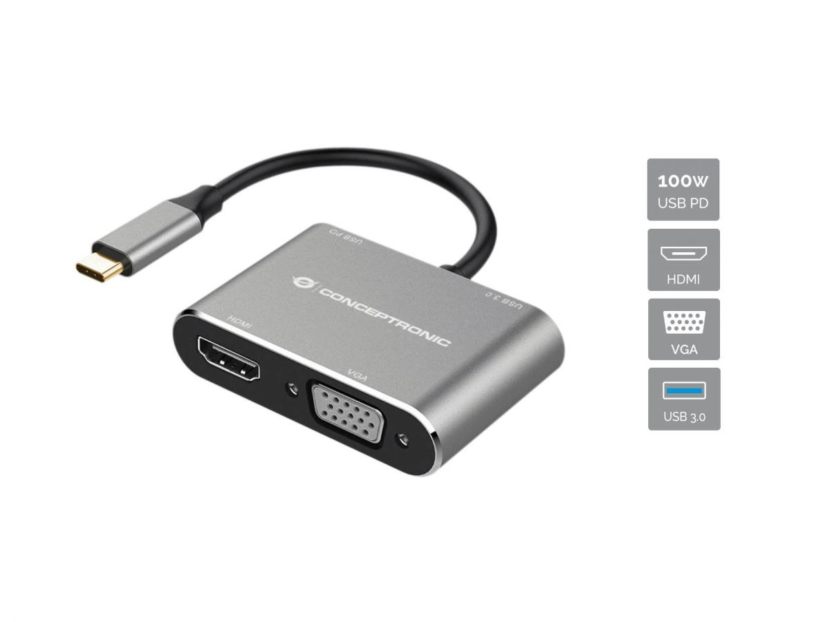 Expand your device's USB-C capacity with the 4-in-1 Docking Station. The device offers HDMI, VGA, USB-C PD, and USB 3.0 ports. This docking station offers a portable solution for connecting an HDMI and VGA display to your USB-C laptop or desktop computer. The multiport video adapter lets you mirror or extend content on two additional monitors simultaneously (1 x HDMI and 1 x VGA), creating a dual-screen workstation. Perfect for home entertainment, office presentations and classroom teaching.