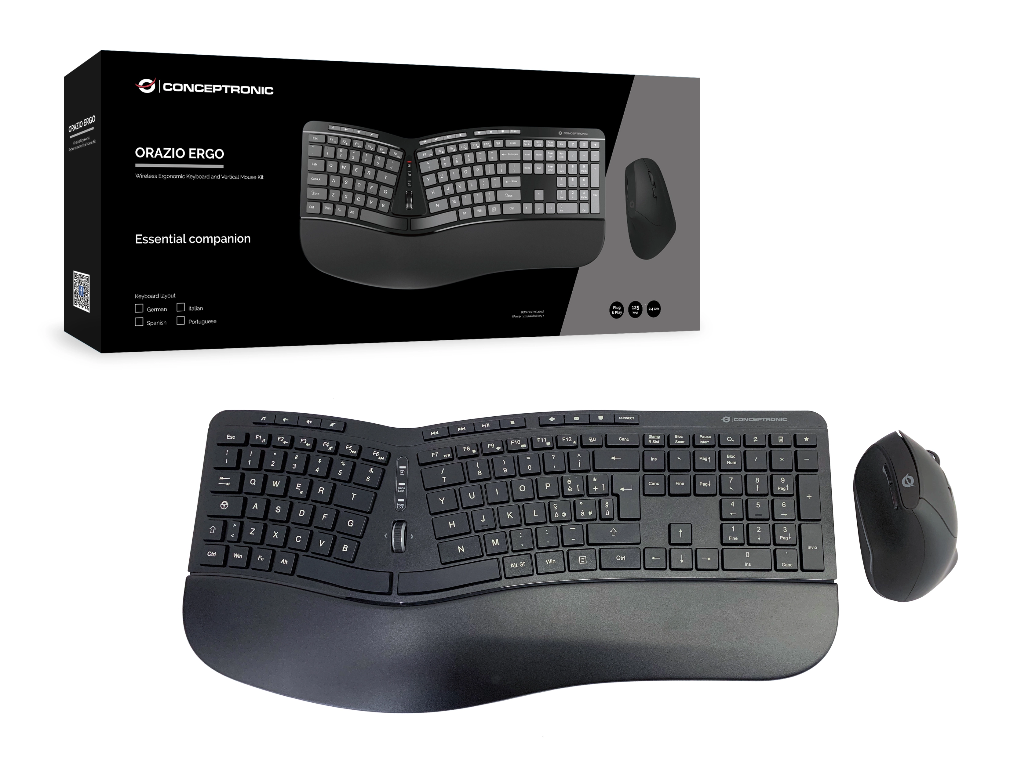 Ergo Wireless Ergonomic Keyboard & Mouse Set - Italian layout