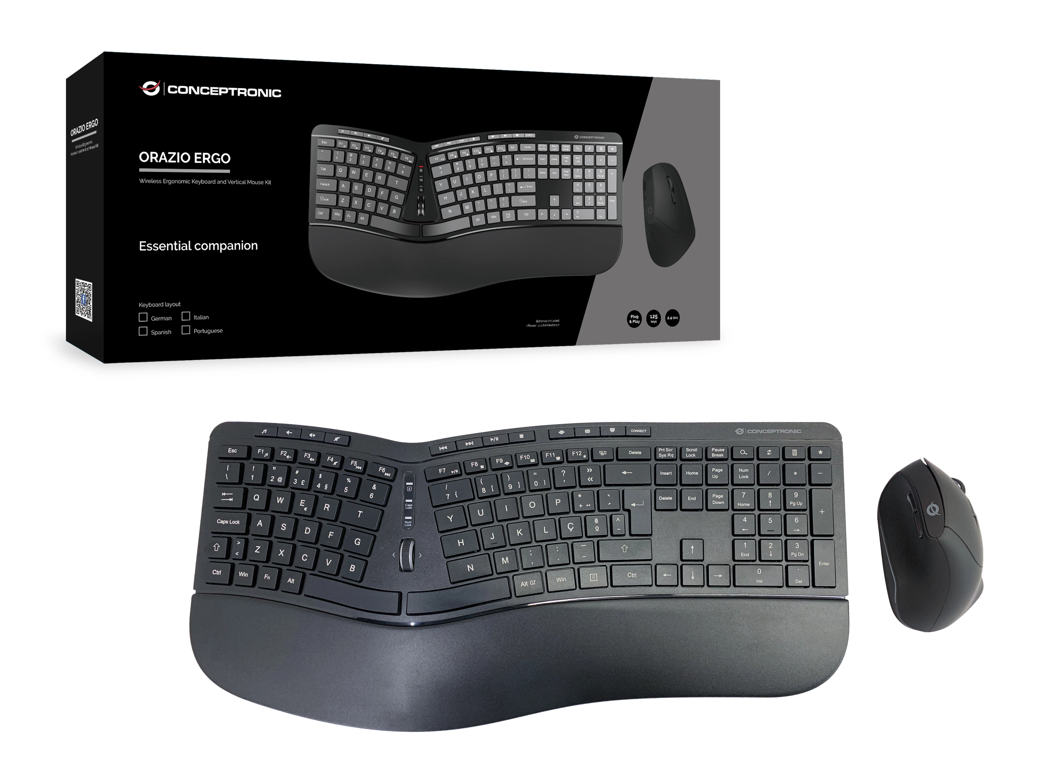 This wireless ergonomic keyboard and mouse combination is an essential companion for the home or office. Simply plug and play to get easy, seamless performance from your devices. The ergonomic keyboard features a full suite of 125 soft-touch keys for accurate, comfortable typing. Comes with a built-in scroll wheel, for easy web browsing and fast, efficient use of software and applications.