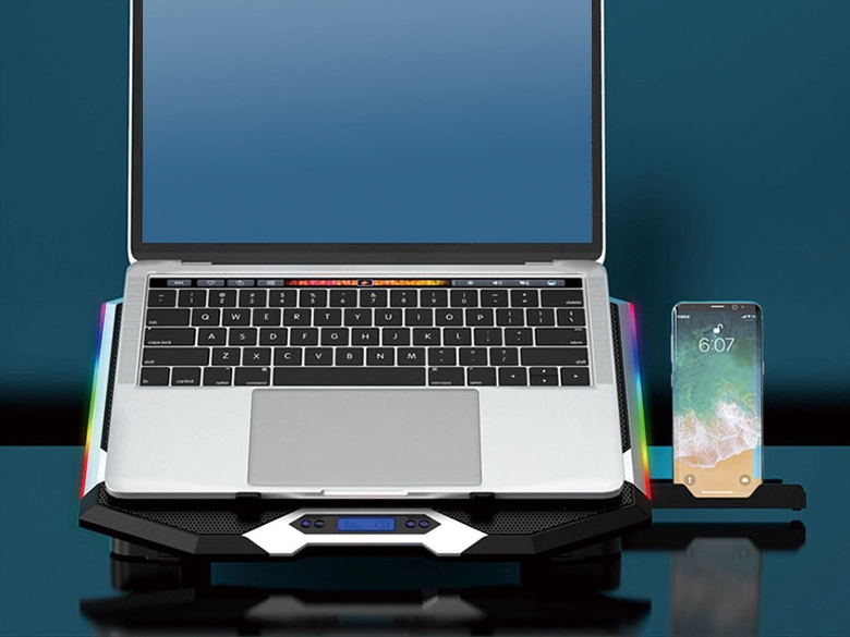 Optimize your gaming experience with the THYIA gaming laptop cooling stand! Adjustable RGB lighting effects enrich the gaming ambience, while quiet yet powerful fans create safe and comfortable operating conditions for your portable device.