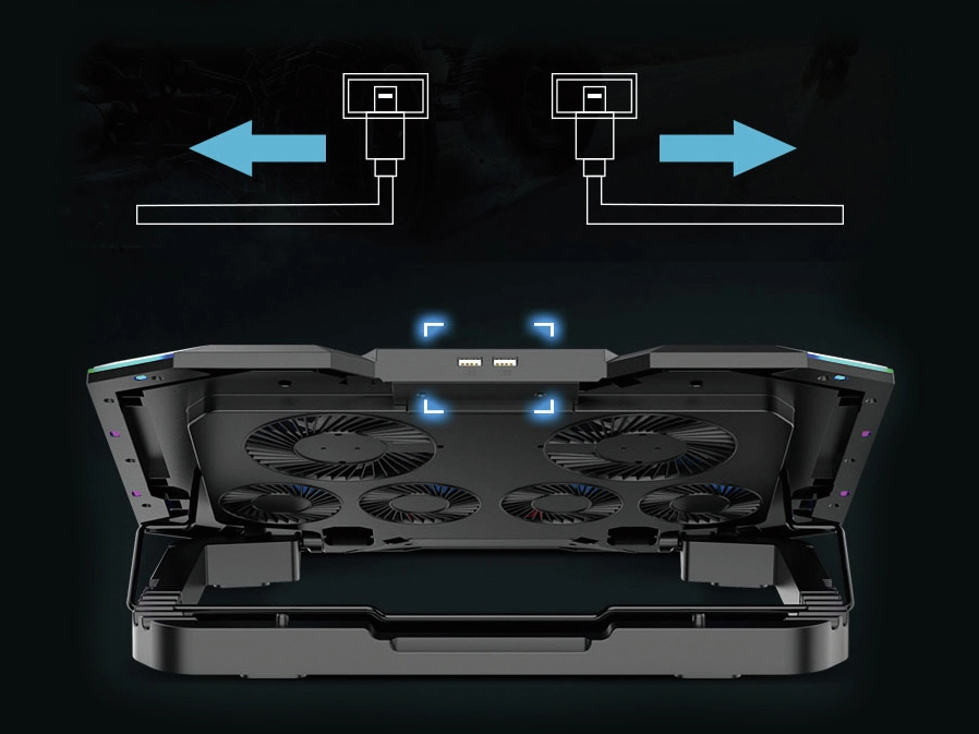 The cooling stand itself is USB powered and is equipped with 2 USB ports so it can work anywhere without the need for a power socket while offering the convenience of spare ports. A powerful support for gamers!