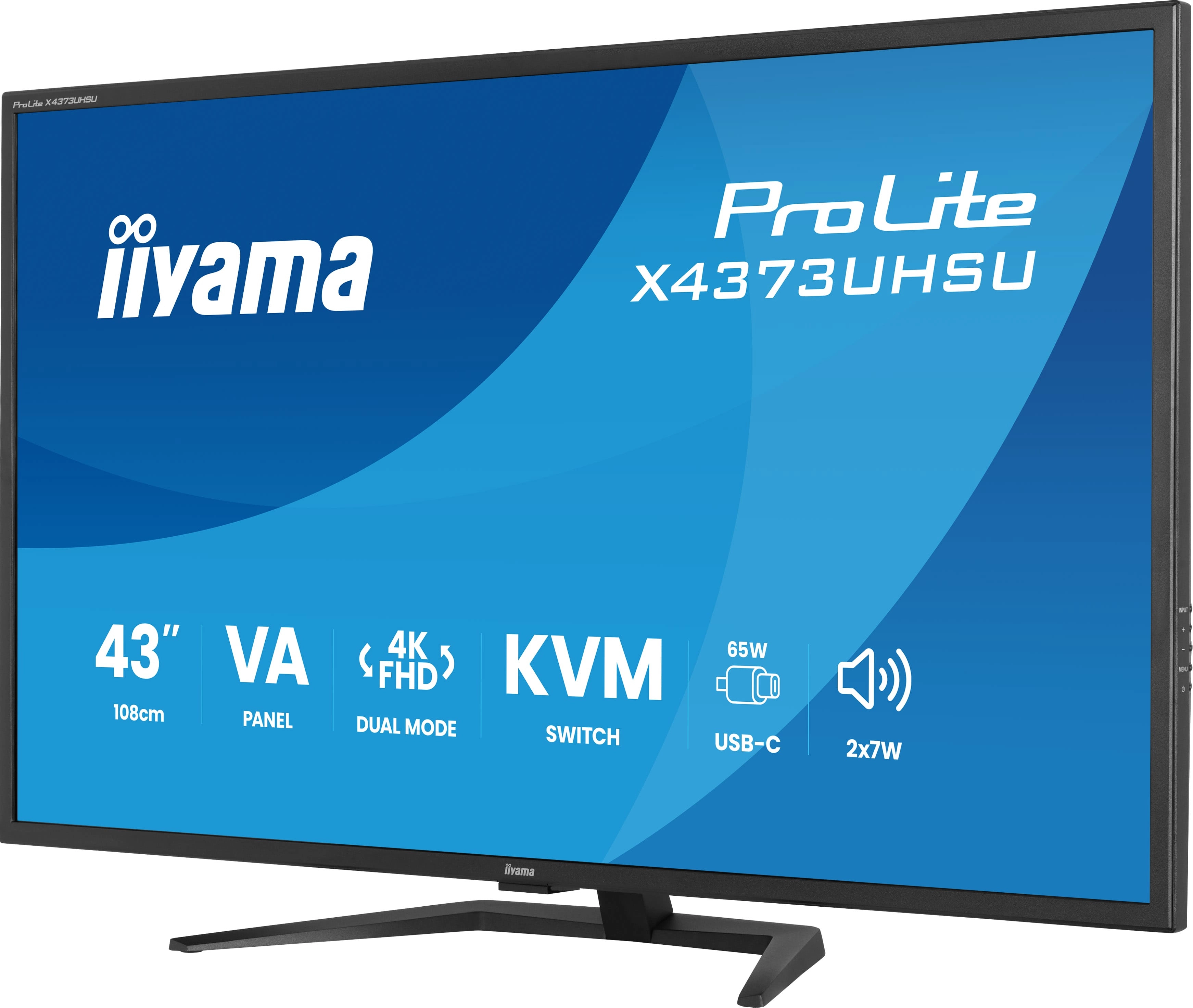 Designed for professionals who need more screen space, the ProLite X4373UHSU offers a seamless solution for multitasking and multi-device workflows. The 43'' panel delivers rich colours, sharp 3840x2160 resolution and wide 178° viewing angles, with 450cd/m² brightness ensuring excellent visibility in any lighting. For added flexibility, the monitor supports dual mode, allowing you to work in 3840×2160 for detailed content creation and data-heavy applications, or switch to 1920×1080 at 120Hz for smoother motion when displaying dynamic content or live feeds.