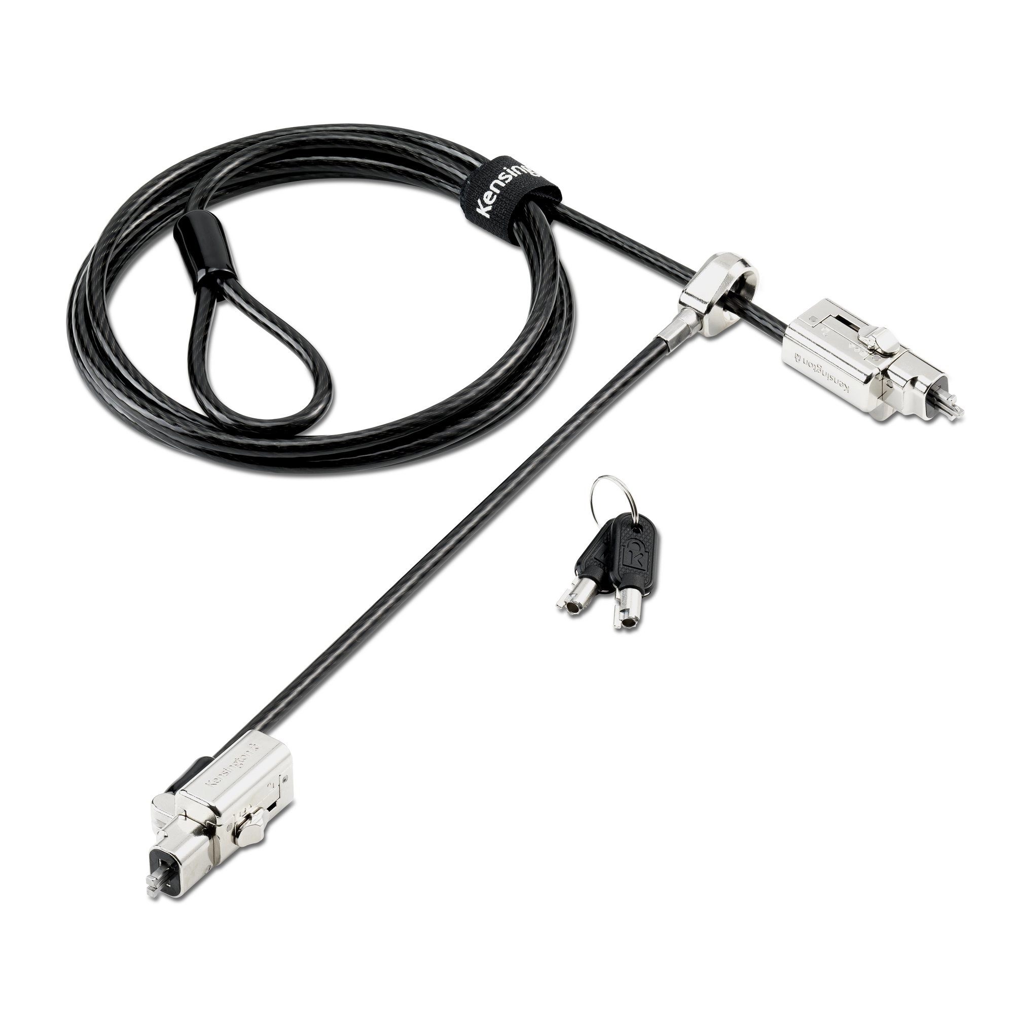 The Universal 3-in-1 2.0 Keyed Dual Lock Head Laptop Lock simplifies this challenge with a true one-tip design that fits standard, nano and wedge-shaped slots, together with a dual lock head that secures two devices at once. Built on Kensington’s 5mm Keying System with Hidden Pin™ anti-pick technology, it delivers strong, consistent protection while reducing inventory, deployment time and complexity.