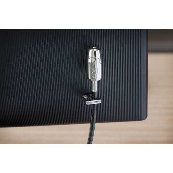 2.4m (8-foot) carbon steel cable is cut-resistant and anchors to desk, table or any fixed structure