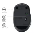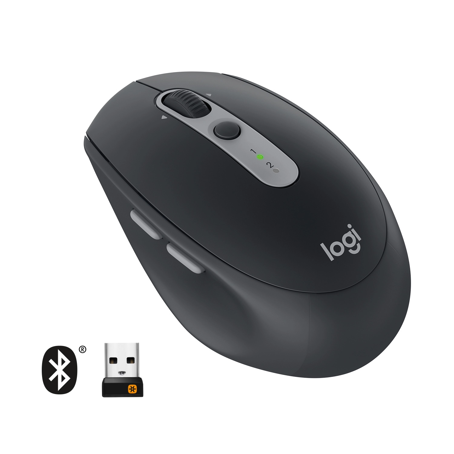 Logitech Wireless Mouse M590 Multi-Device Silent. Form factor: Right-hand. Movement detection technology: Optical, Device interface: RF Wireless + Bluetooth, Movement resolution: 1000 DPI, Buttons type: Pressed buttons, Buttons quantity: 7, Scroll type: Wheel. Power source: Batteries. Product colour: Graphite