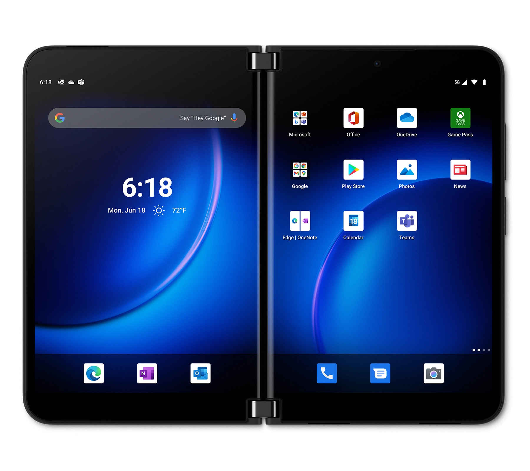 True mobile multitasking. Enhanced Microsoft 365 apps make the most of two screens with new levels of productivity. Across two screens, see your 5-day Outlook calendar, or write an email with your inbox in view.