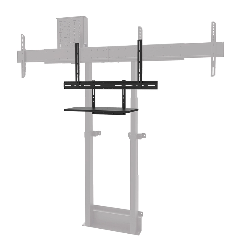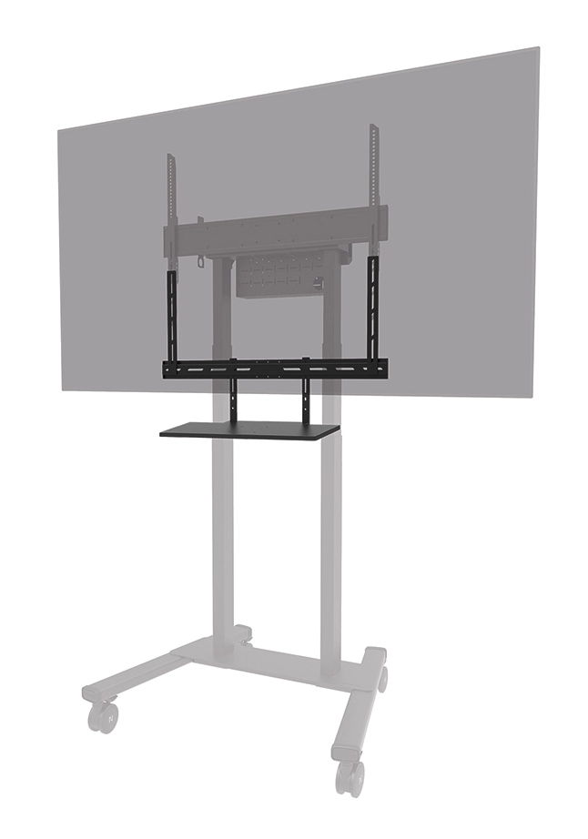 For optimal flexibility, both the shelf support and backplate brackets are height adjustable. The AV40-500BL mounting holes allow width and height variations, while the VESA frame adjusts in four positions (200/400/600/800). The kit is compatible with both wall and floor mounts. Installation is quick and straightforward, with ruler-guided alignment ensuring a precise and seamless fit.