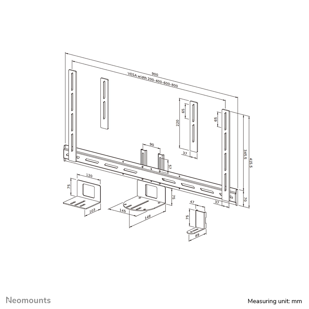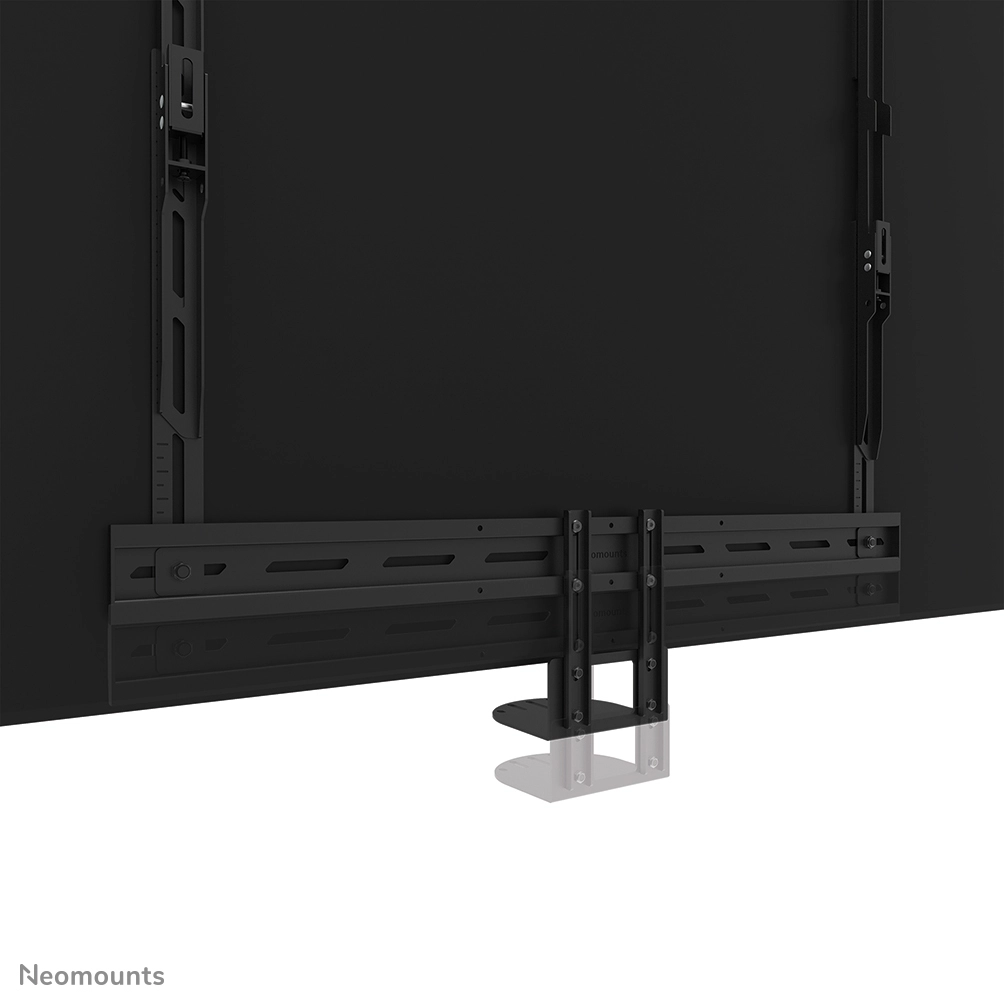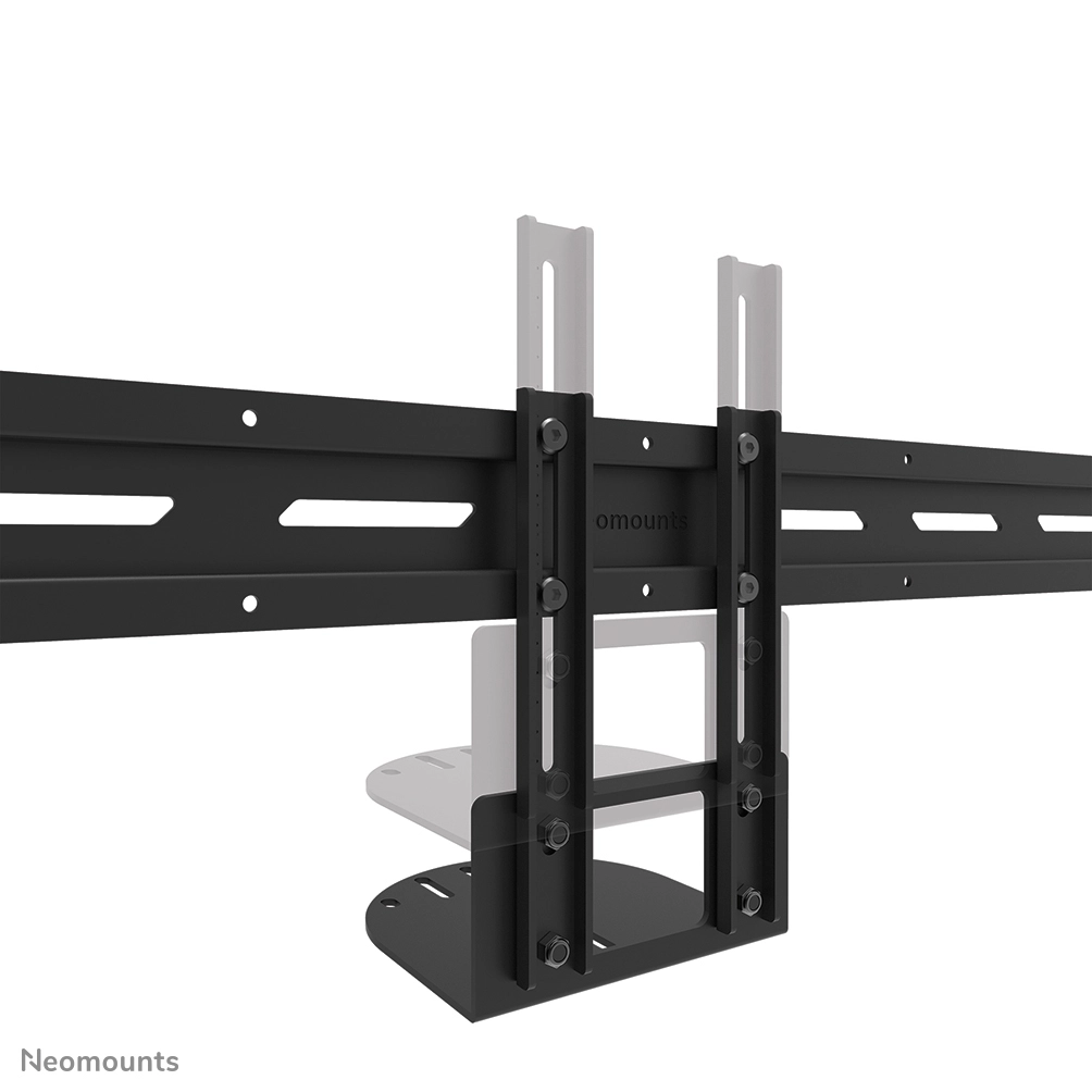 The Neomounts AV50-500BL is a universal PTZ/UC camera shelf kit designed for 43" displays and larger, with VESA hole patterns ranging from 200x200 up to 800x600 mm. Built for durability and versatility, the kit supports devices up to 5 kg and can be installed either above or below the display. Both the camera support and the backplate brackets are height-adjustable for maximum flexibility.