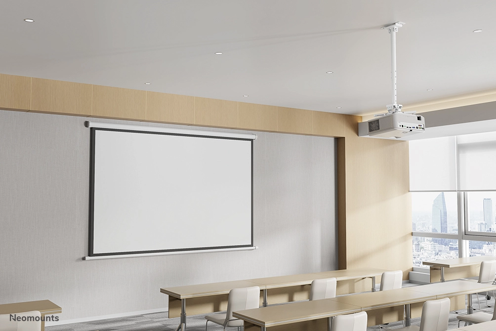 The Neomounts CL25-540WH1 is a universal projector ceiling mount. Because of the high weight capacity up to 35 kg and the various adjustment options, this projector ceiling mount is widely applicable. The CL25-540WH1 has four extendable arms and the versatile tilt (+20°, -20°), rotate (360°) and swivel (+8°, -8°) technology, provides optimal placement of the projection on any canvas, screen or wall. The support is also adjustable in height from 60, 5 to 90, 5 cm.