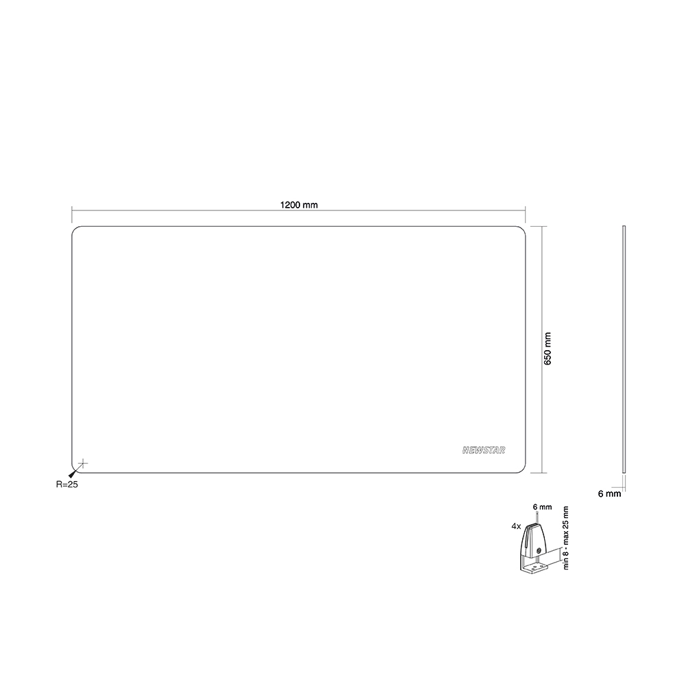 The NS-GLSPROTECT120 is 1, 2 m wide x 65 cm high and suitable for desks with a maximum thickness of 25 mm*. The screen is made of 6 mm laminated and tempered glass and has rounded corners and edges for extra safety. The screen can be easily installed onto the desk with 2 clamps and offers a durable and stylish solution for the new way of working. The screen comes with both white and black clamps as standard. The clamps guarantee a solid and secure installation onto the desk and move smoothly with the sit-stand workstation when it is adjusted in height.