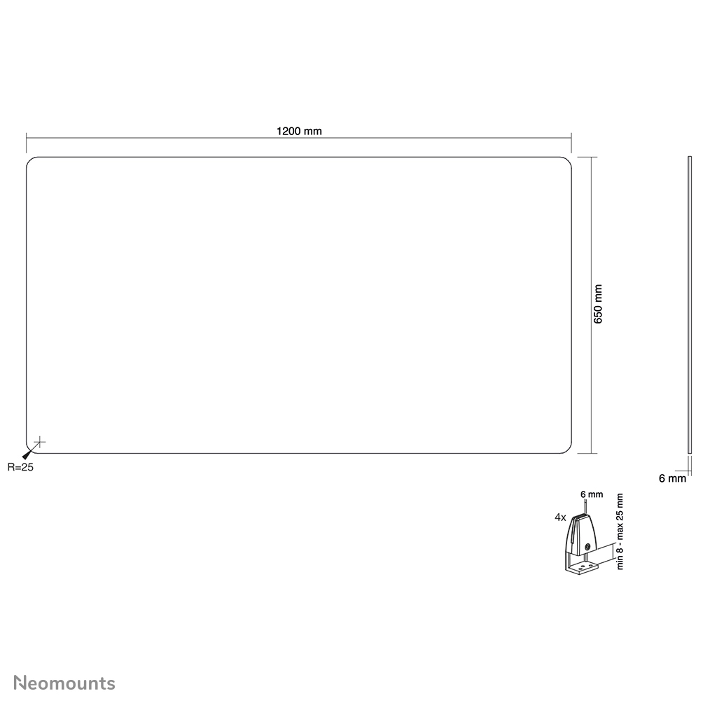 For desks with a table top thicker than 25 mm, the NS-CLMP40BLACK and NS-CLMP40WHITE clamps are available. With these clamps, the NS-GLSPROTECT120 can be mounted on desks with a work surface of 25-40 mm thick.