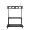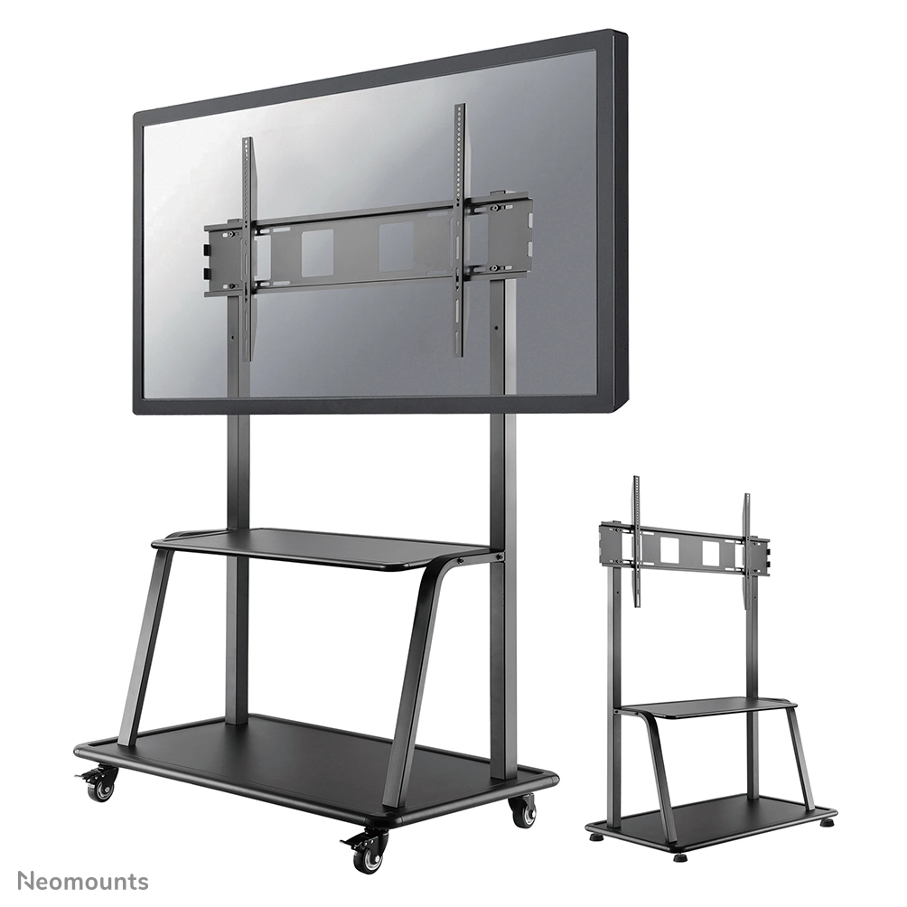 Neomounts by Newstars' floor stand, NS-M4000BLACK holds your TV, AV equipment and even hides your cables. The casters allow the stand to move it to where you need it. Easily roll this cart through doorways and over thresholds. The trolley features four solid castor wheels, of which the two front wheels are equipped with a brake. The floor stand also comes with four leveling feet.