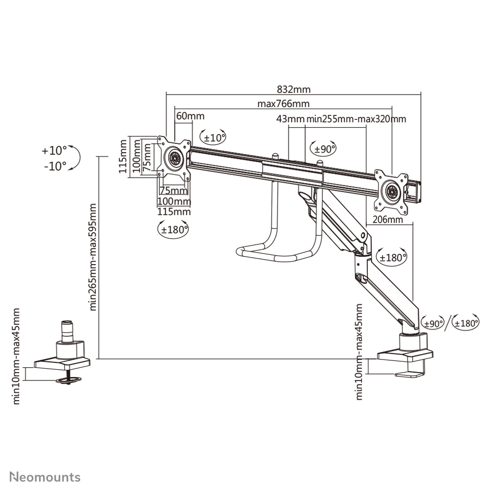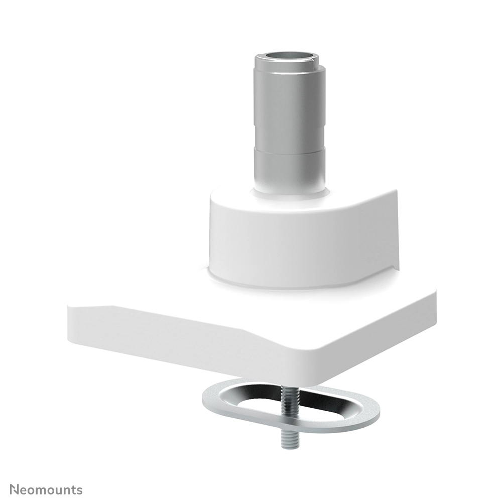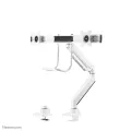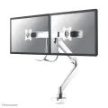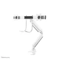 The Neomounts Select NM-D775DXWHITE is a tilt-, swivel and rotatable desk mount with crossbar and handle for 2 flat screens up to 32". This mount is a great choice for space saving placement on desks using a desk clamp or grommet mount.