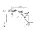 Neomounts Selects' unique tilt (20°), rotate (360°) and swivel (180°/360°) technology allows the mount to change to any viewing angle to fully benefit from the capabilities of the flat screen. The mount is easily individually height adjustable to 60 centimetres using a gas spring. Depth adjustable from 0 to 63 centimetres. A unique cable management conceals and routes cables from mount to flat screen. Hide your cables to keep the workplace nice and tidy. The mount is equipped with a 180° stop mechanism.