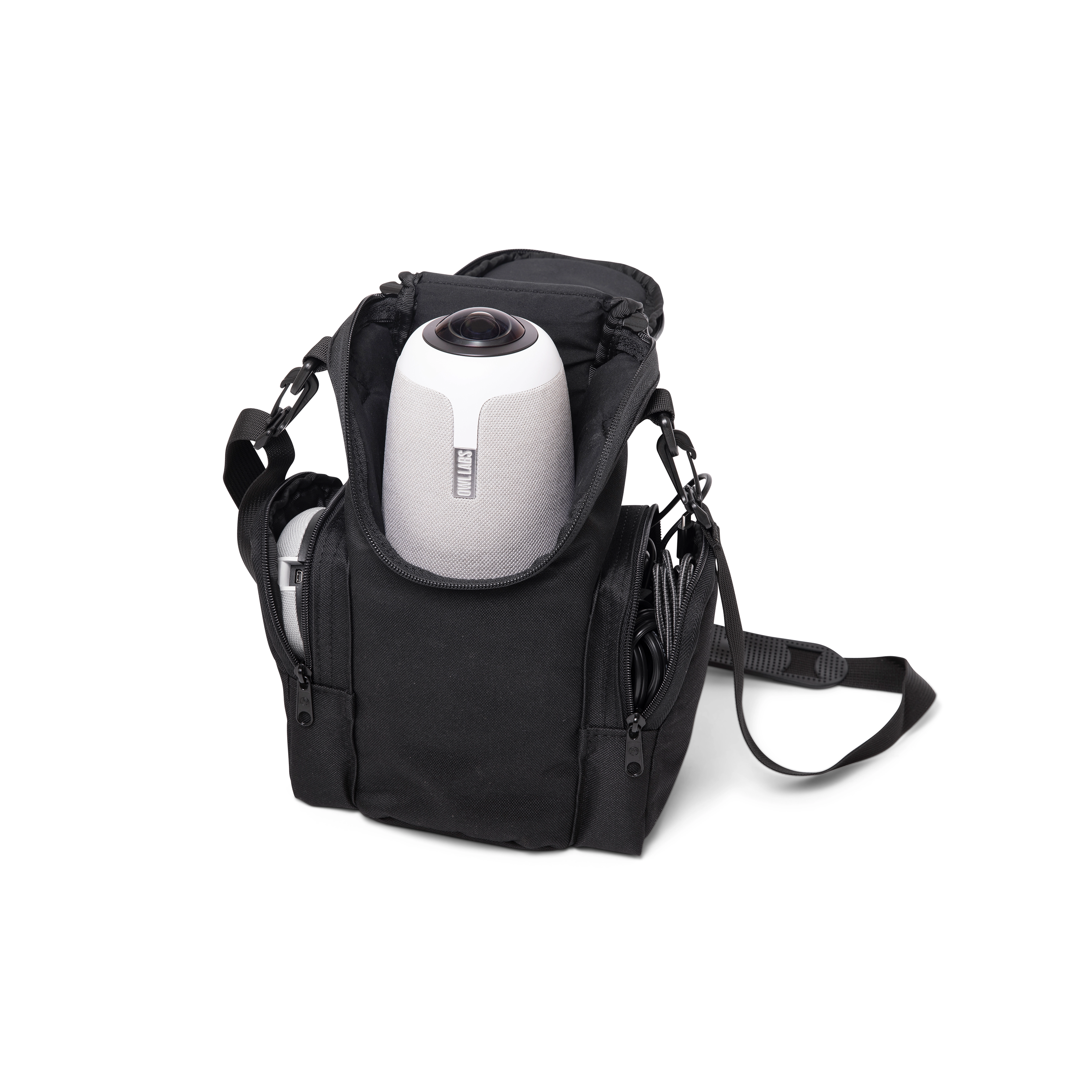 Keep your Meeting owl and accessories organized for transport and travel. Our custom soft-sided travel case with a scratch-proof inner lining holds the Meeting Owl, the Expansion Mic, cables, and power supply, so you can safety store your tech while on the go.