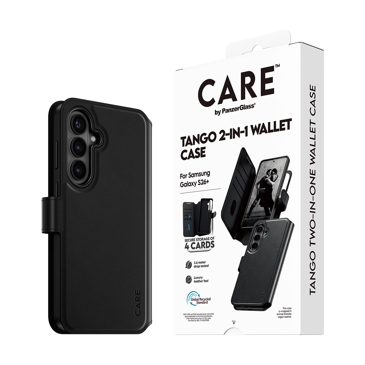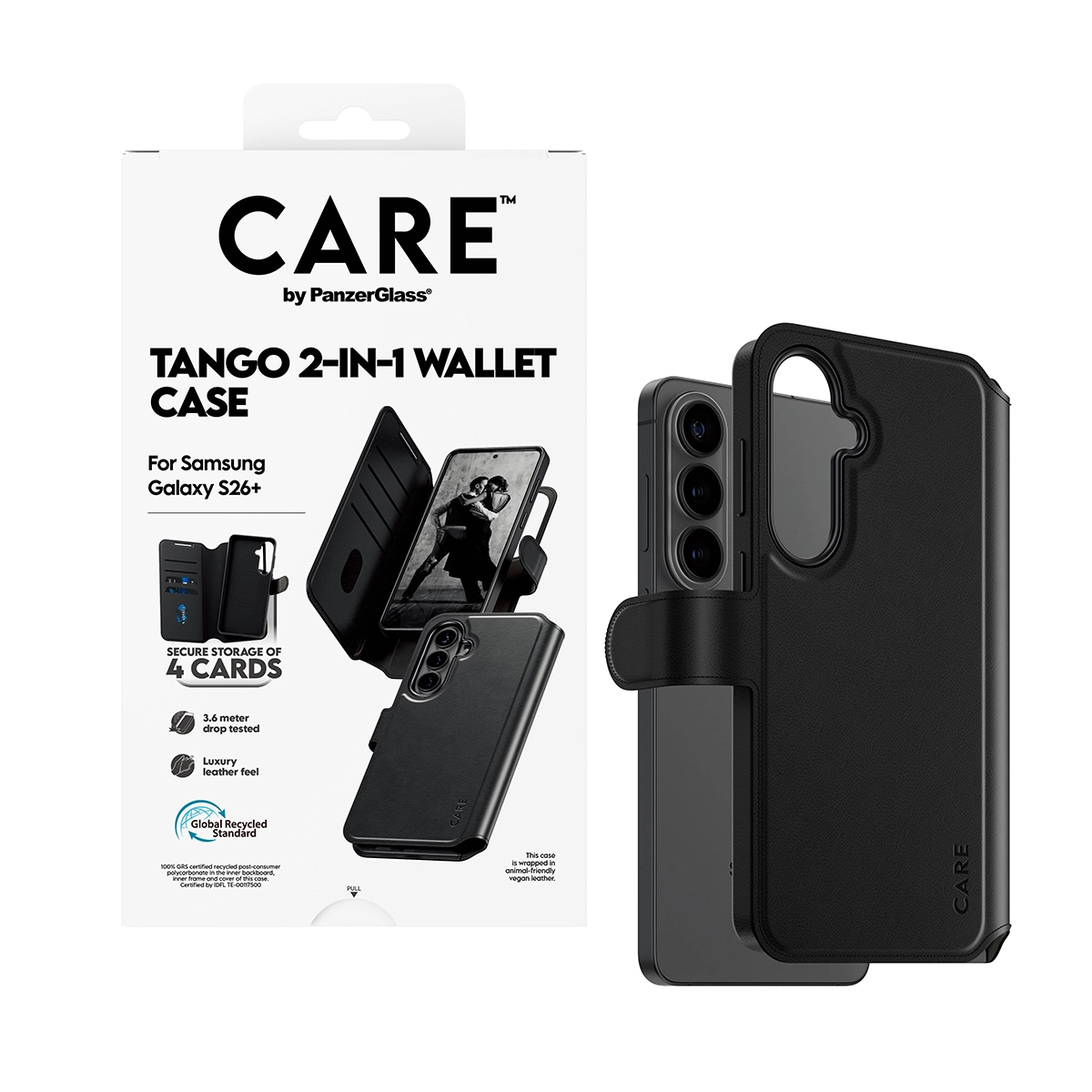 Tango Two-in-One Wallet Case It takes two to tango. This slim yet durable wallet-and-case-in-one has a luxurious leather-like feel. It’s a stylish combination of protection and convenience at your fingertips. More than just an accessory, this chic casual wallet features easy open-and-close claps and a detachable phone case wrapped in animal-friendly vegan leather, providing secure storage of up to four cards. And with integrated Qi wireless charging, you can effortlessly keep your device charged and ready.