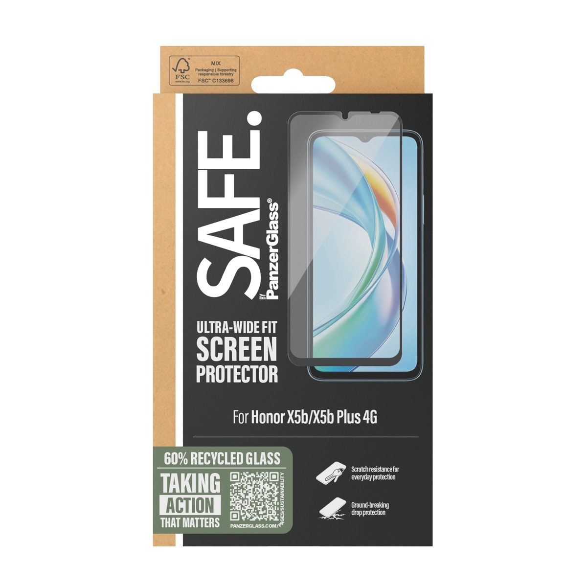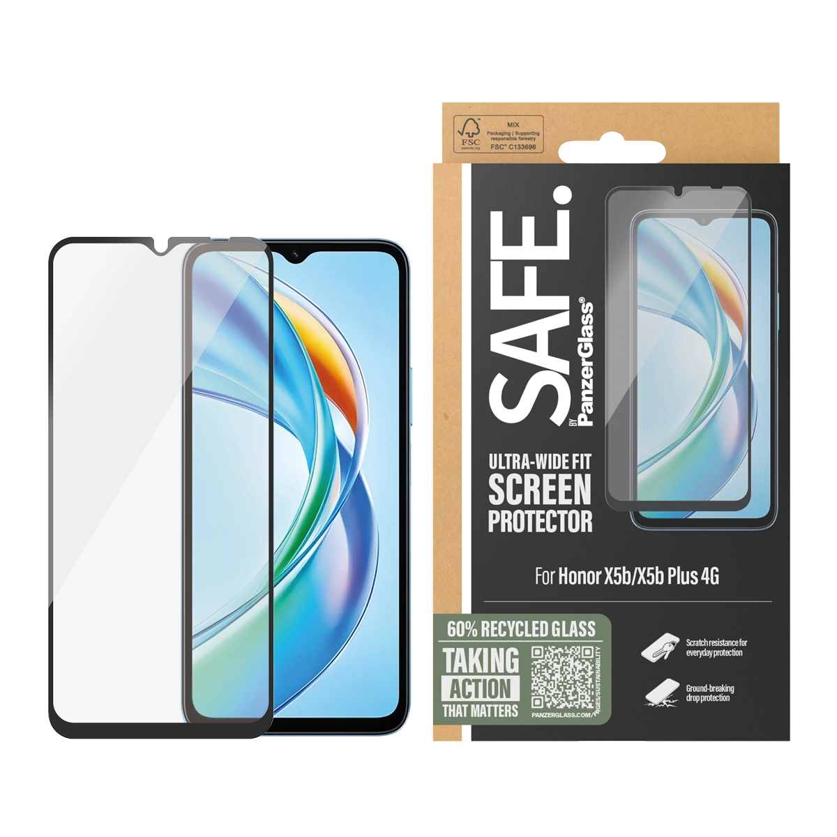 SAFE by PanzerGlass Screen Protector Honor X5 and X5B Plus 4G Ultra-Wide Fit