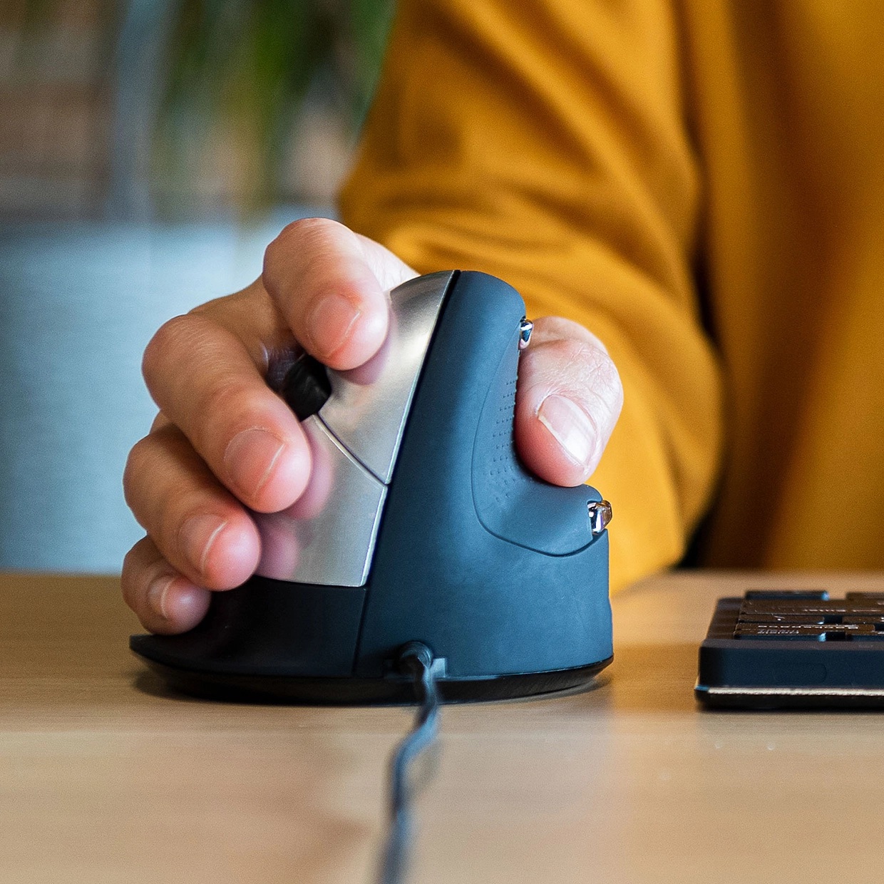 The ergonomic R-Go HE Break mouse has a vertical position, so you will automatically move the mouse with your forearm instead of just your hand. This prevents strain injuries, such as CANS. The HE Break mouse has a round shape, so your hand and wrist are in a natural, relaxed position. The mouse fits comfortably in your hand and supports all fingers. Are you left- or right-handed? We have different versions and sizes available, so the mouse fits every hand.