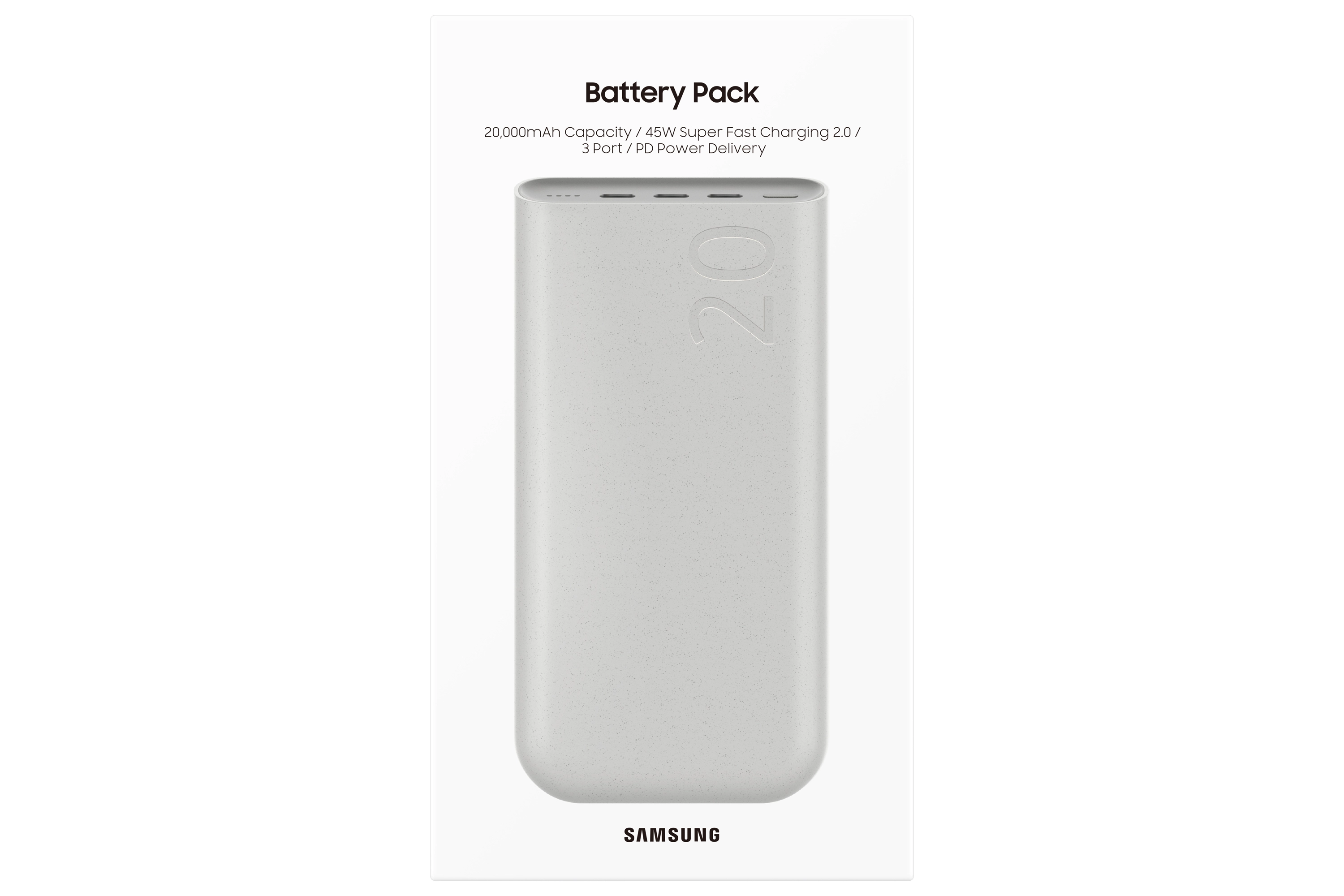 The 45W high-capacity 20, 000mAh Battery Pack with super-fast charging 2.0 allows you to rapidly recharge compatible third-party and Samsung devices, including the battery pack itself, when it's low. Equipped with Power Delivery 3.0 and USB-C to ensure you can charge your devices on the go.