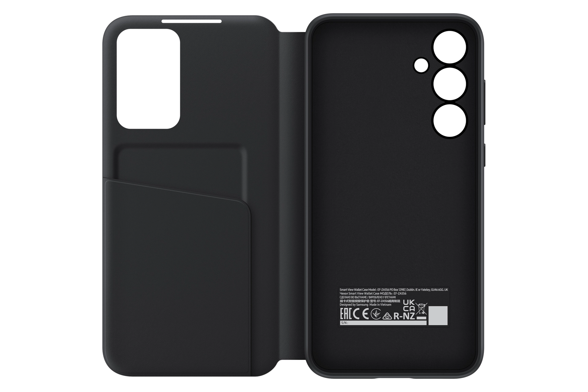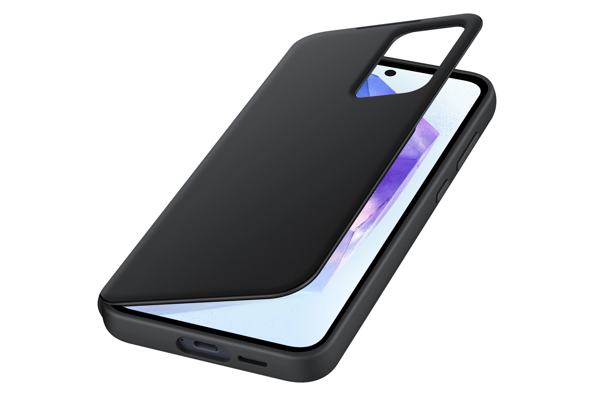 The Smart View Wallet Case protects your device in sleek style and lets you access the interactive display of your Galaxy A55 5G without opening the cover. Available in Black, White and Lavender.