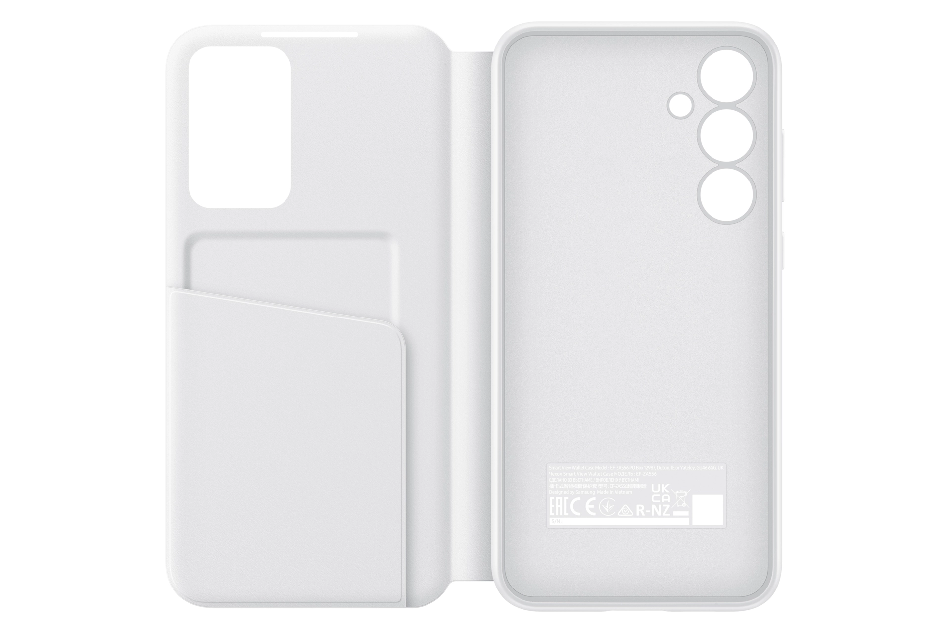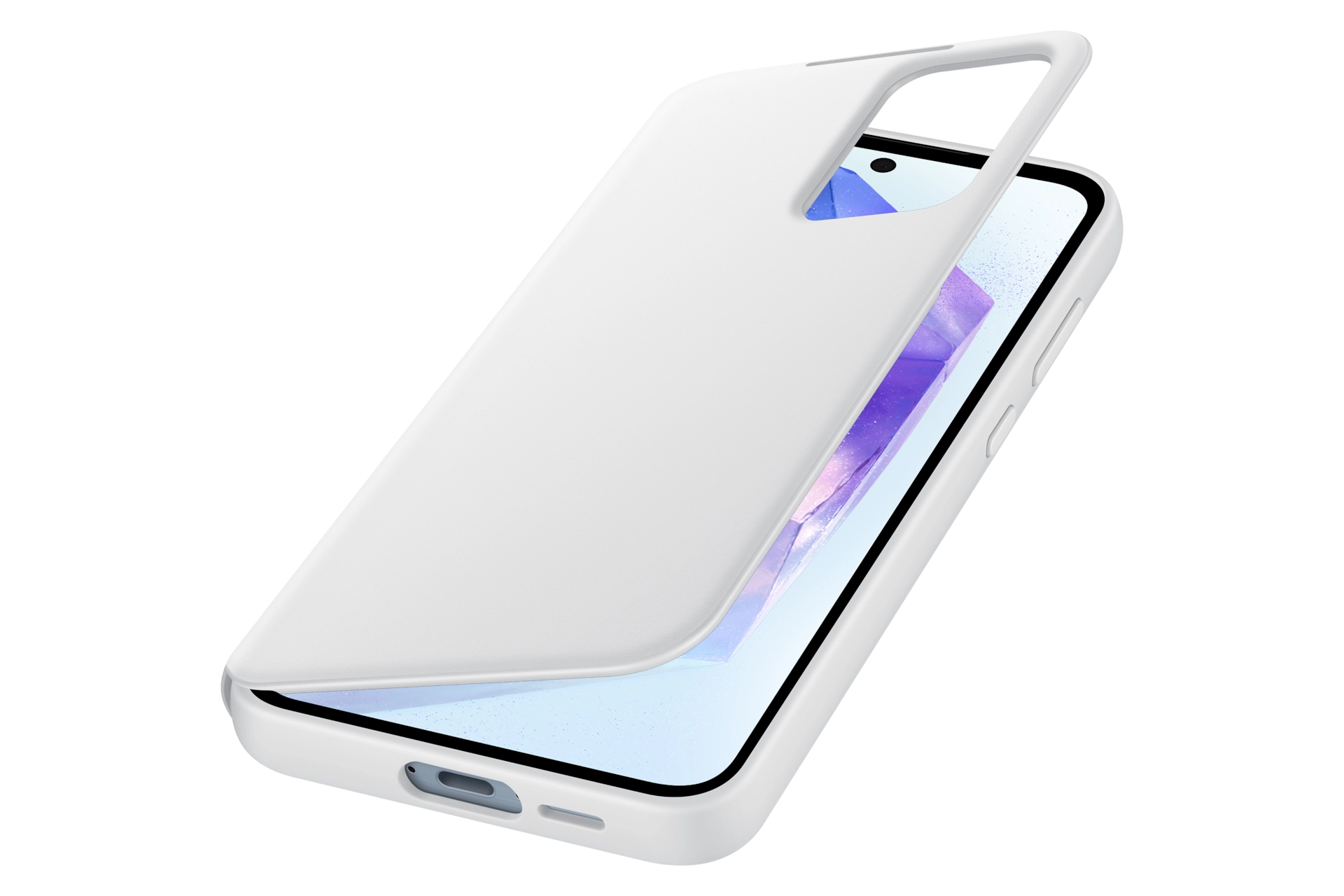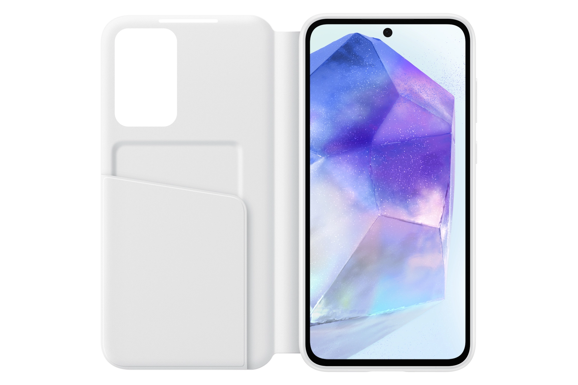The Smart View Wallet Case protects your device in sleek style and lets you access the interactive display of your Galaxy A55 5G without opening the cover. Available in Black, White and Lavender.