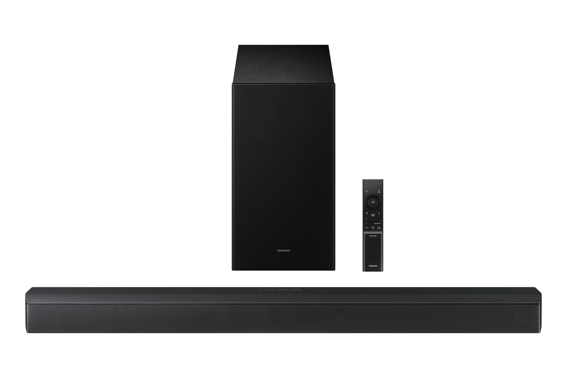 Samsung B-Series HW-B66CF/XN. Audio output channels: 3.1 channels, Audio decoders: Dolby Digital 5.1, Equalizer modes: Adaptive, Bass Boost, Game, Standard, Surround Sound Expansion. Subwoofer connectivity: Wireless. Product colour: Black, Audio formats supported: AAC, AIFF, FLAC, LPCM, MP3, OGG, WAV. Connectivity technology: Wired & Wireless. Subwoofer power consumption: 48 W, Power consumption (max): 24 W, Power consumption (standby): 0.5 W
