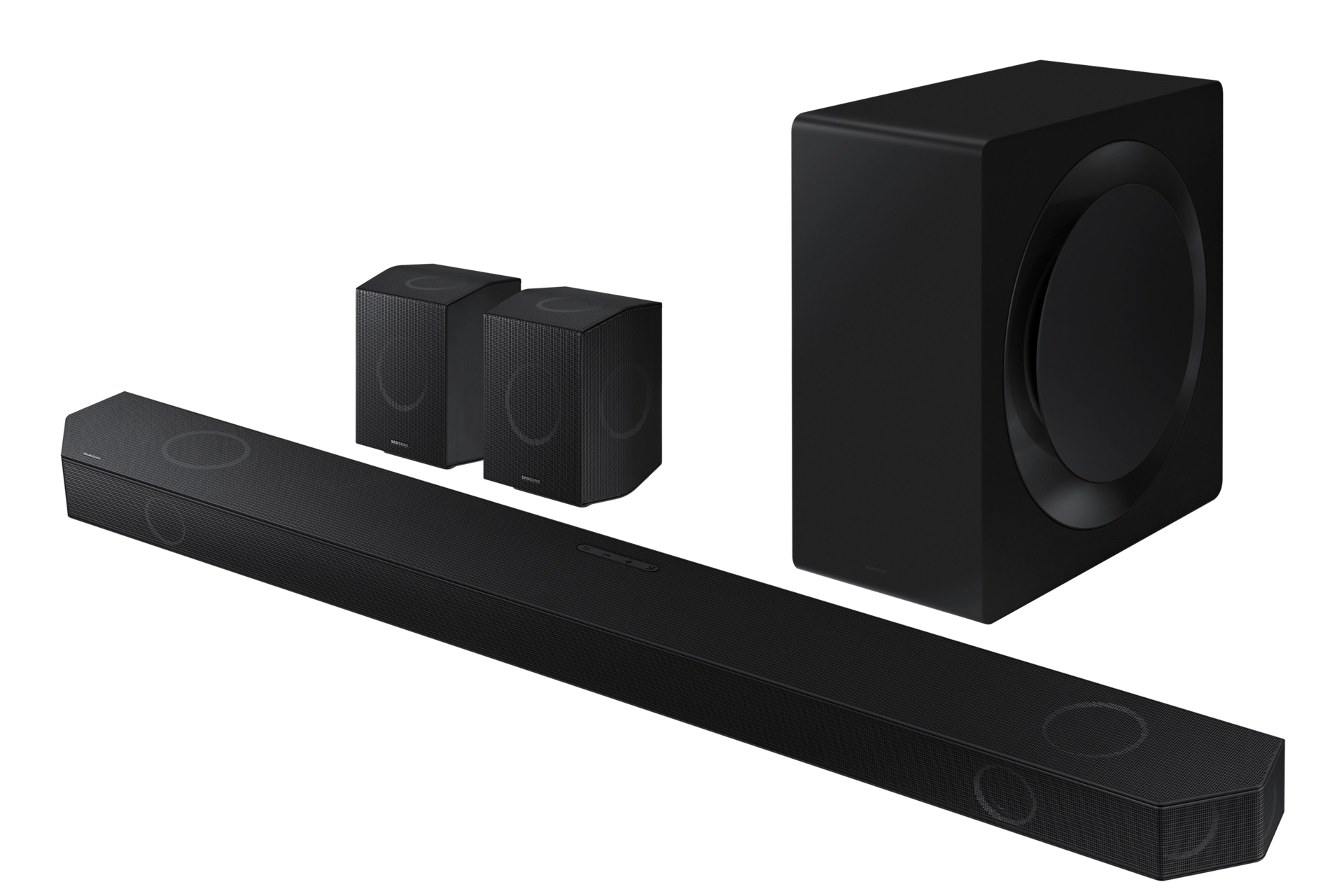 Samsung Q-series HW-Q990D. Audio output channels: 11.1.4 channels, Audio decoders: Dolby Atmos, Dolby Digital Plus, Dolby TrueHD, Equalizer modes: Adaptive, Game Pro, Standard, Surround Sound Expansion. Subwoofer connectivity: Wireless. Product colour: Black, Graphite, High Dynamic Range (HDR) technology: High Dynamic Range 10+ (HDR10 Plus), Audio formats supported: AAC, AIFF, ALAC, FLAC, MP3, OGG, WAV. Connectivity technology: Wired & Wireless. Soundbar power consumption: 41 W, Subwoofer power consumption: 26 W, Power consumption (standby): 0.5 W