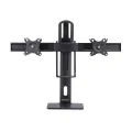 Dual monitor desk stand with support for up to 27" monitors featuring height-adjustable column