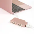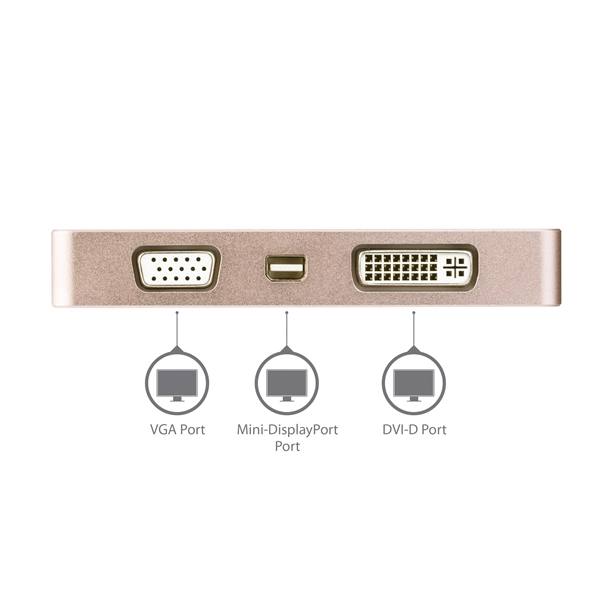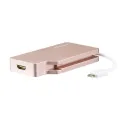 This rose gold USB-C multiport video adapter offers a portable solution for connecting your USB Type-C laptop to a VGA, DVI, HDMI or Mini DisplayPort display. The adapter is also available in silver (CDPVGDVHDMDP) and space gray (CDPVDHDMDPSG).