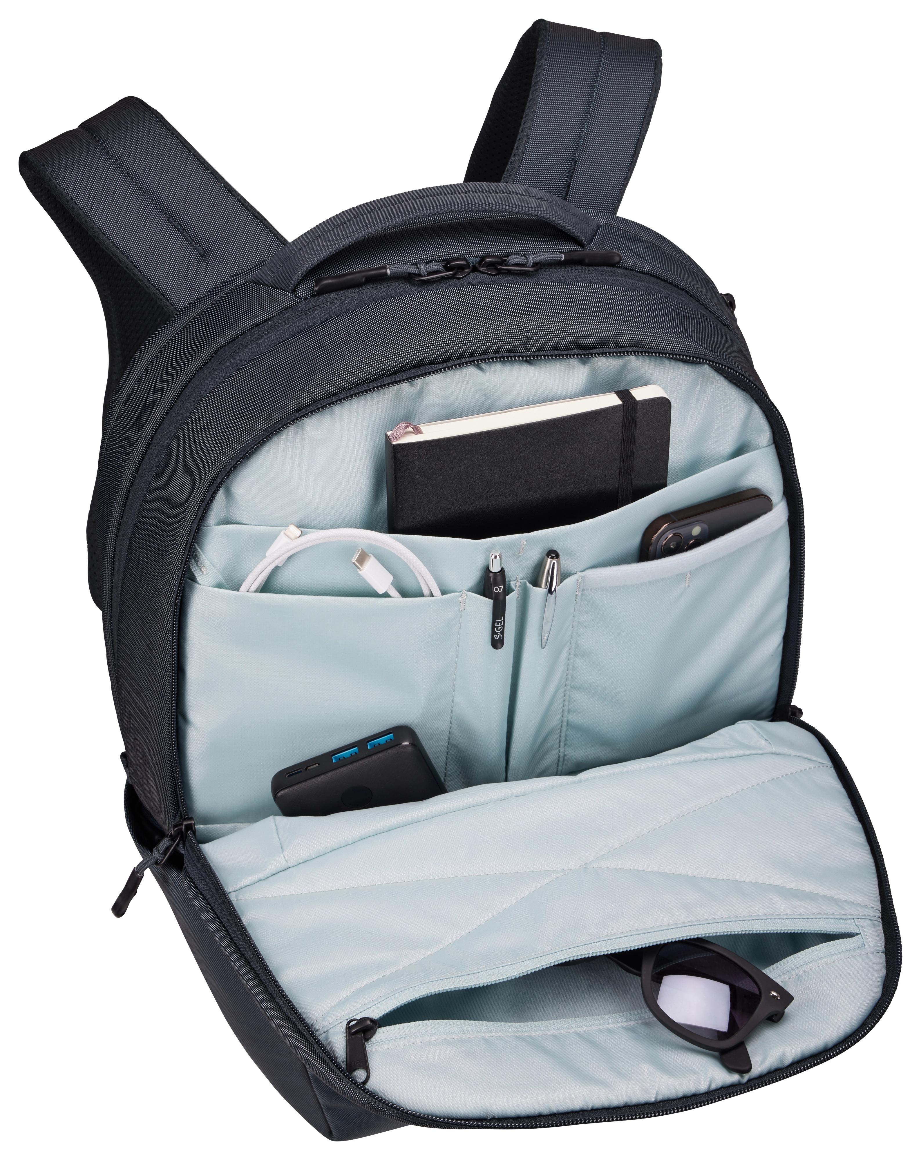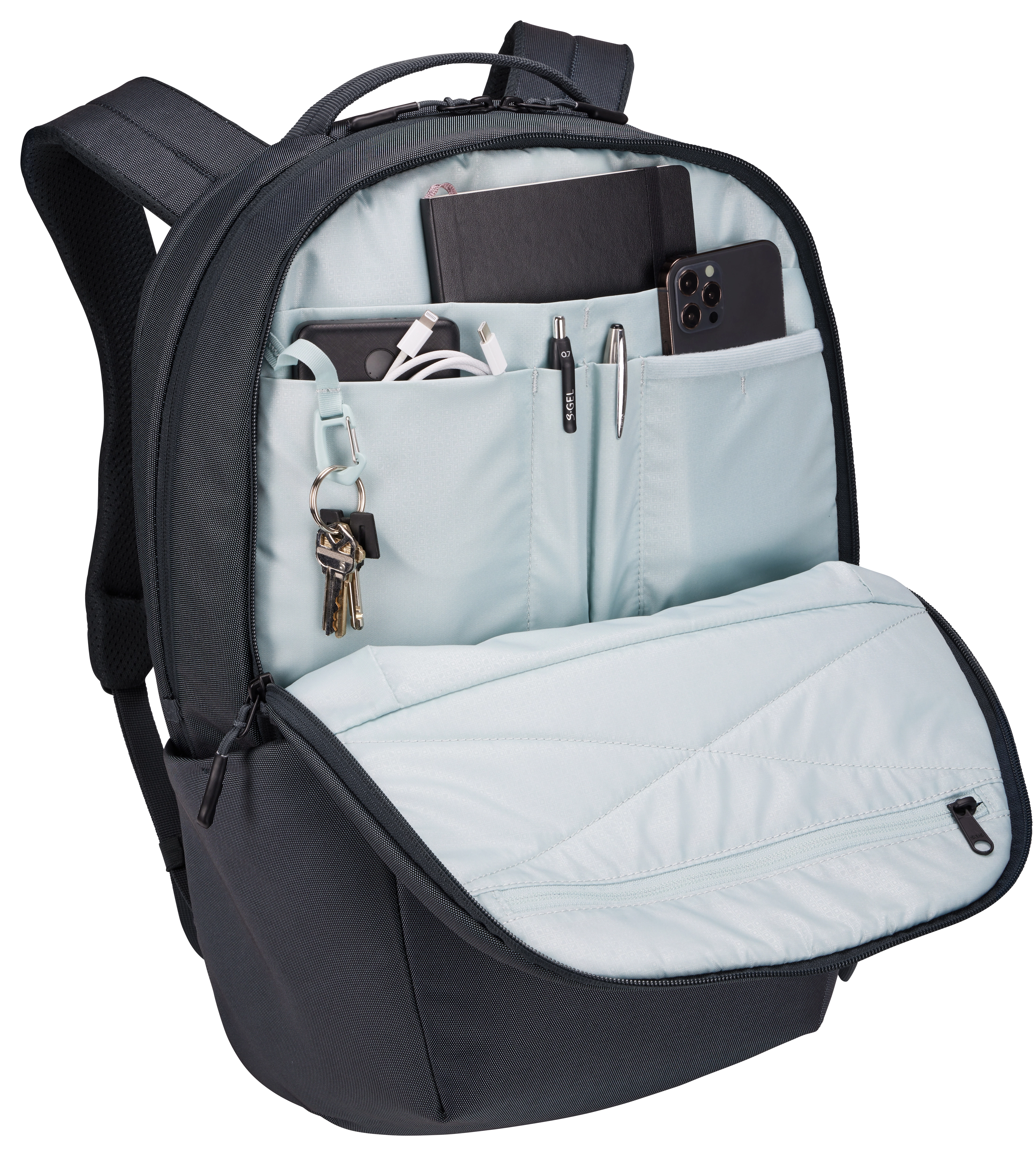 Business card, Cell phone pocket, Document pocket, Key pocket, Pen pocket, Tablet pocket |