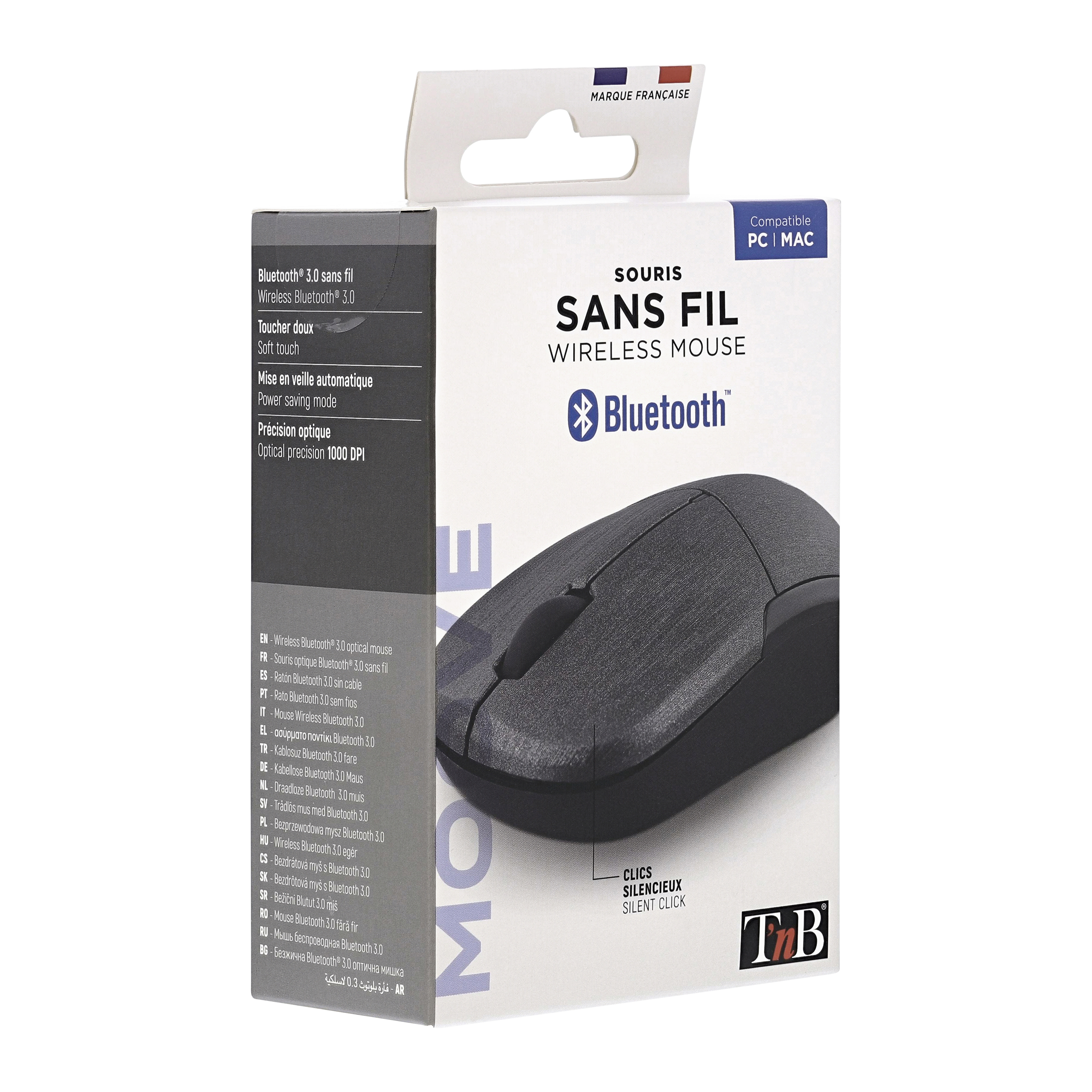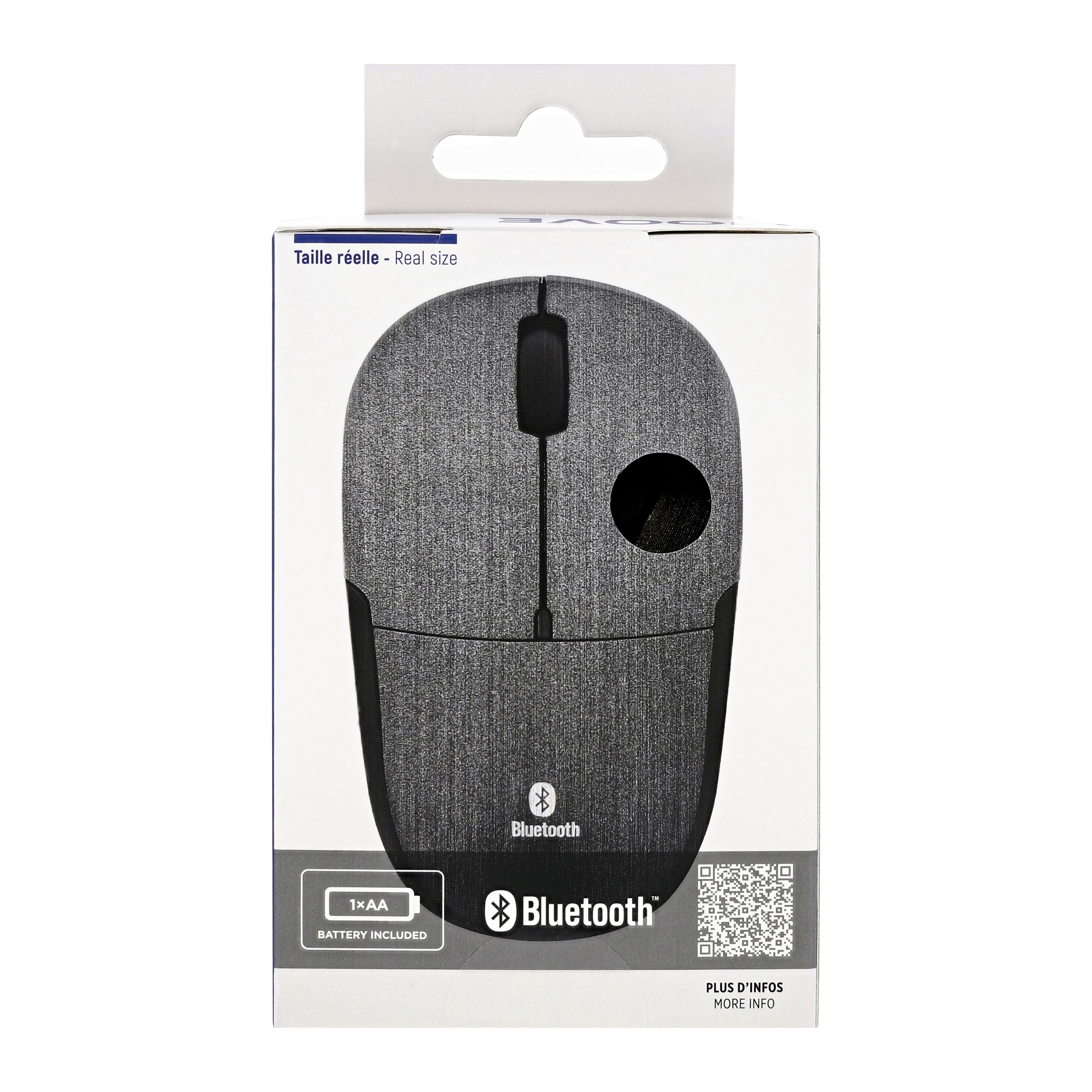 Battery-powered Bluetooth wireless mouse with auto-sleep and ON/OFF button. Super easy Bluetooth connection to your computer. Once paired, it automatically reconnects to your computer. No need for a dongle. Brushed finish and ergonomic shape for excellent user comfort.