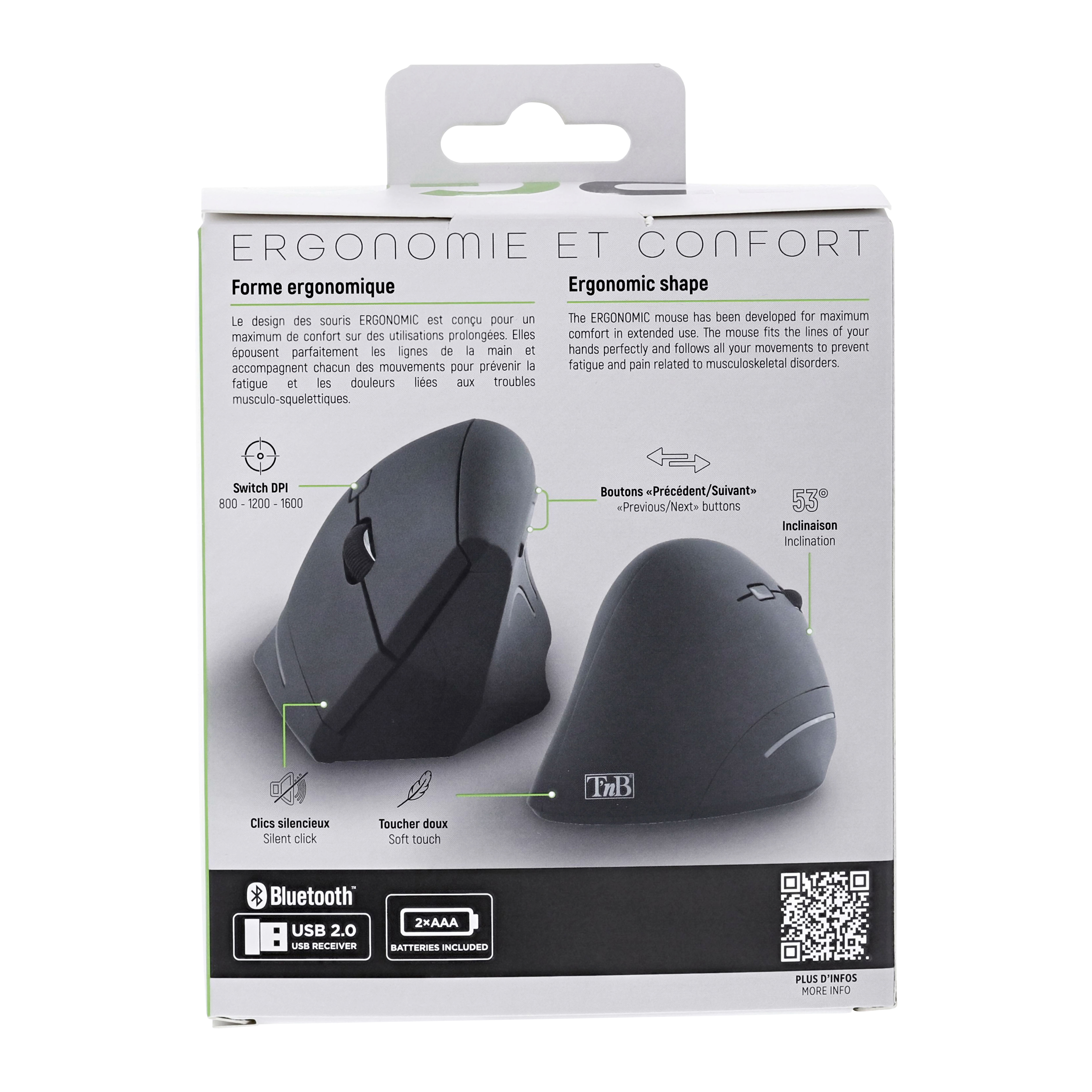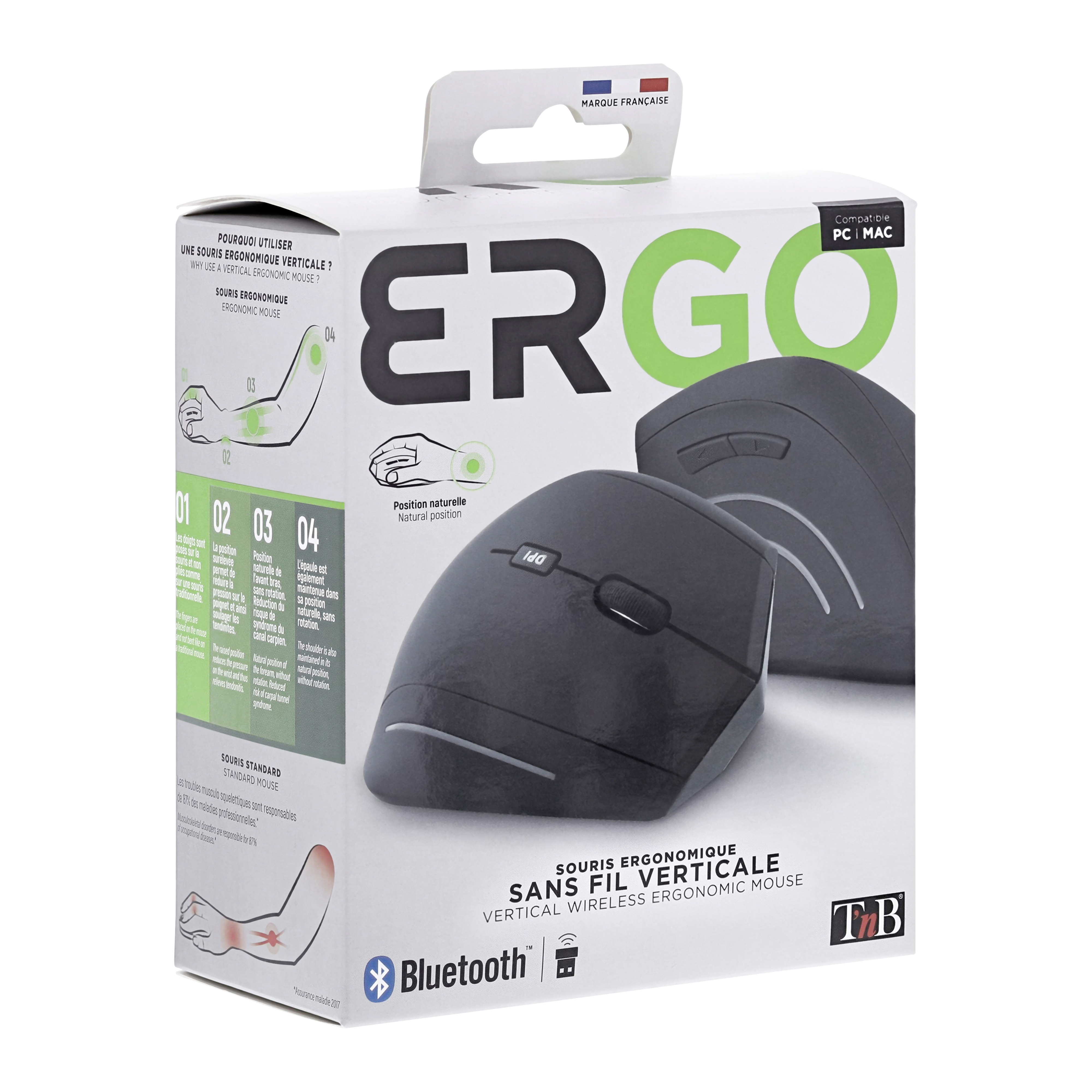 ERGO Line Ergo Vertical Wireless Mouse Dual Connection Mode Bluetooth + Usb-A 2.4 Ghz Design Designed For Optimal Use