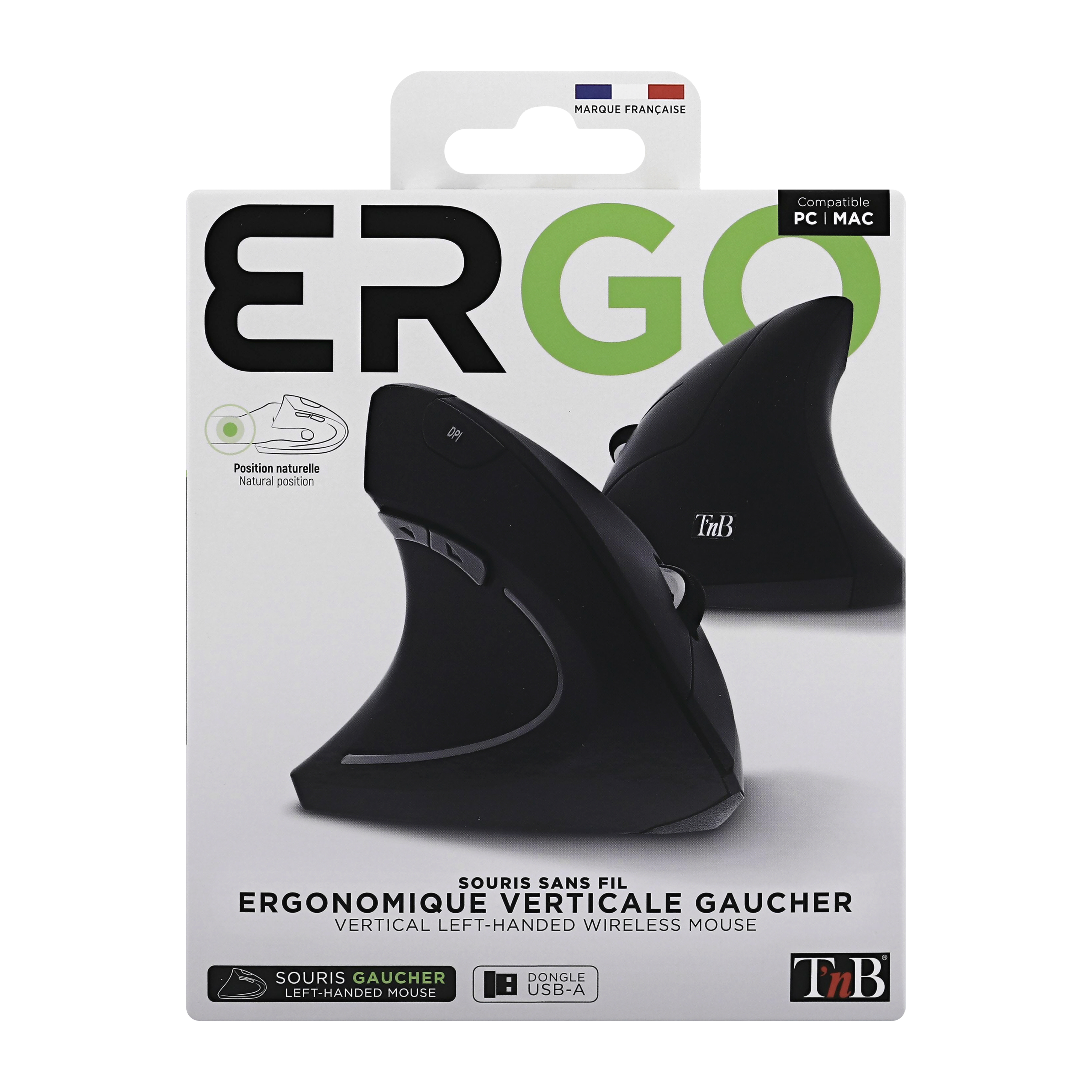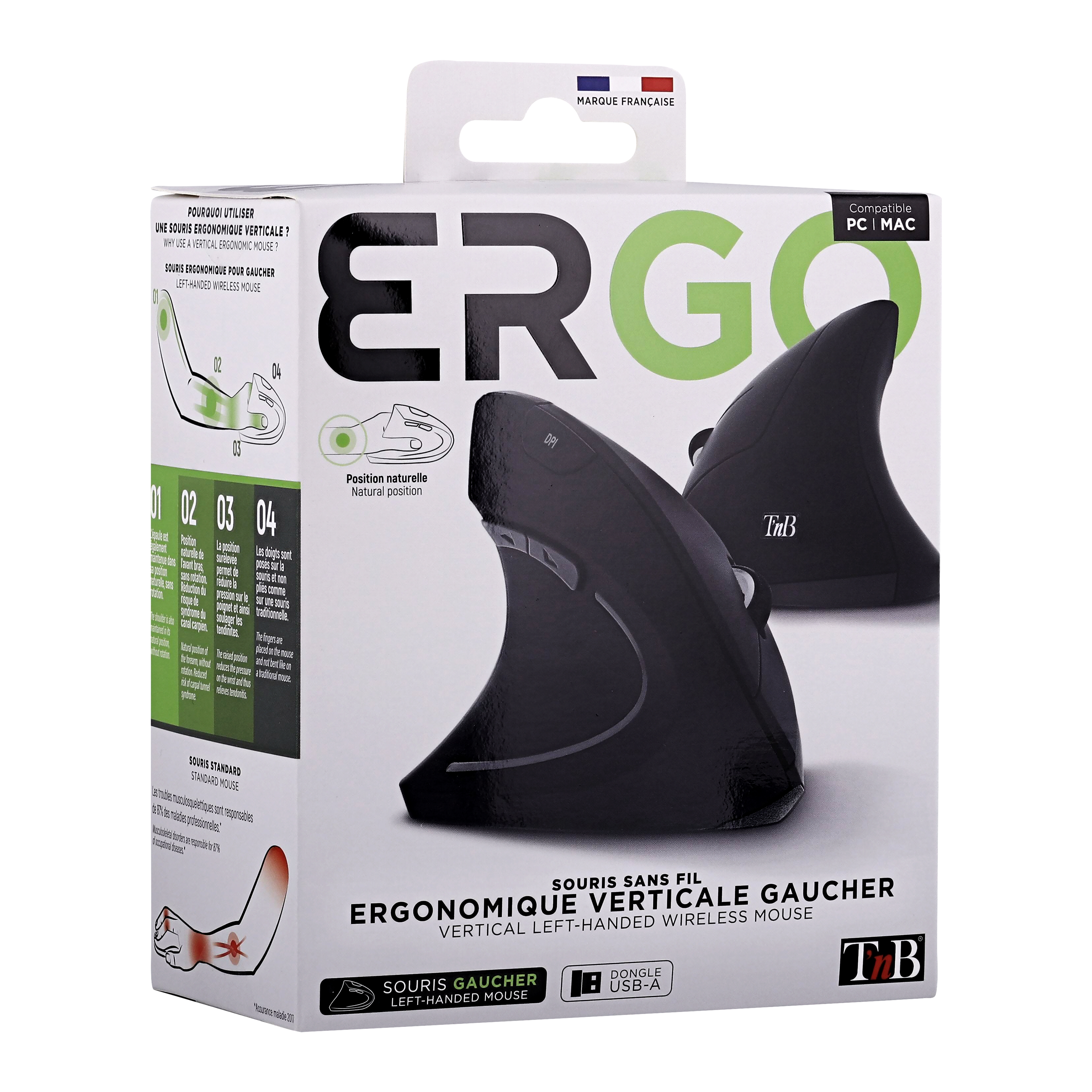 Ergonomic vertical wireless mouse for left-handed people.