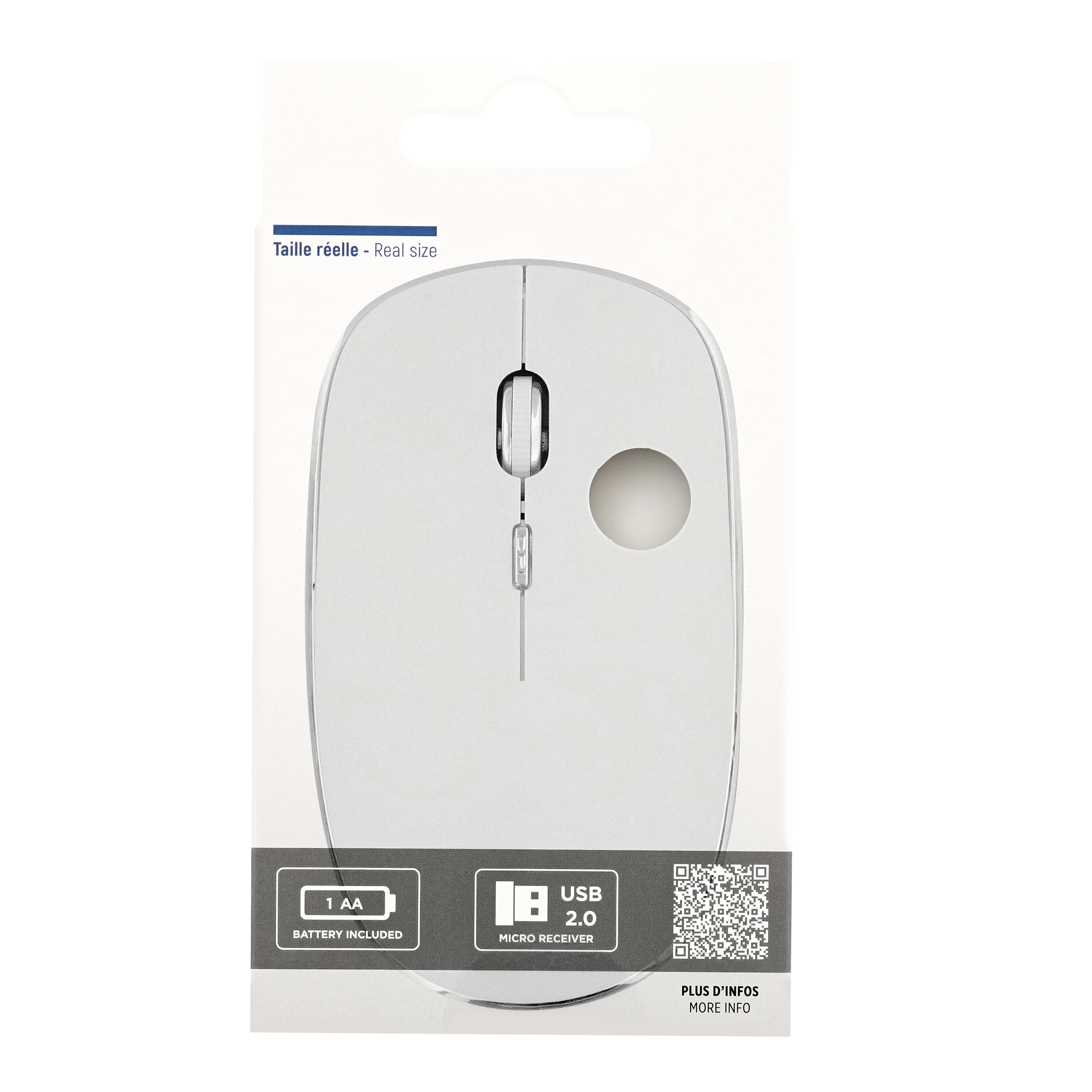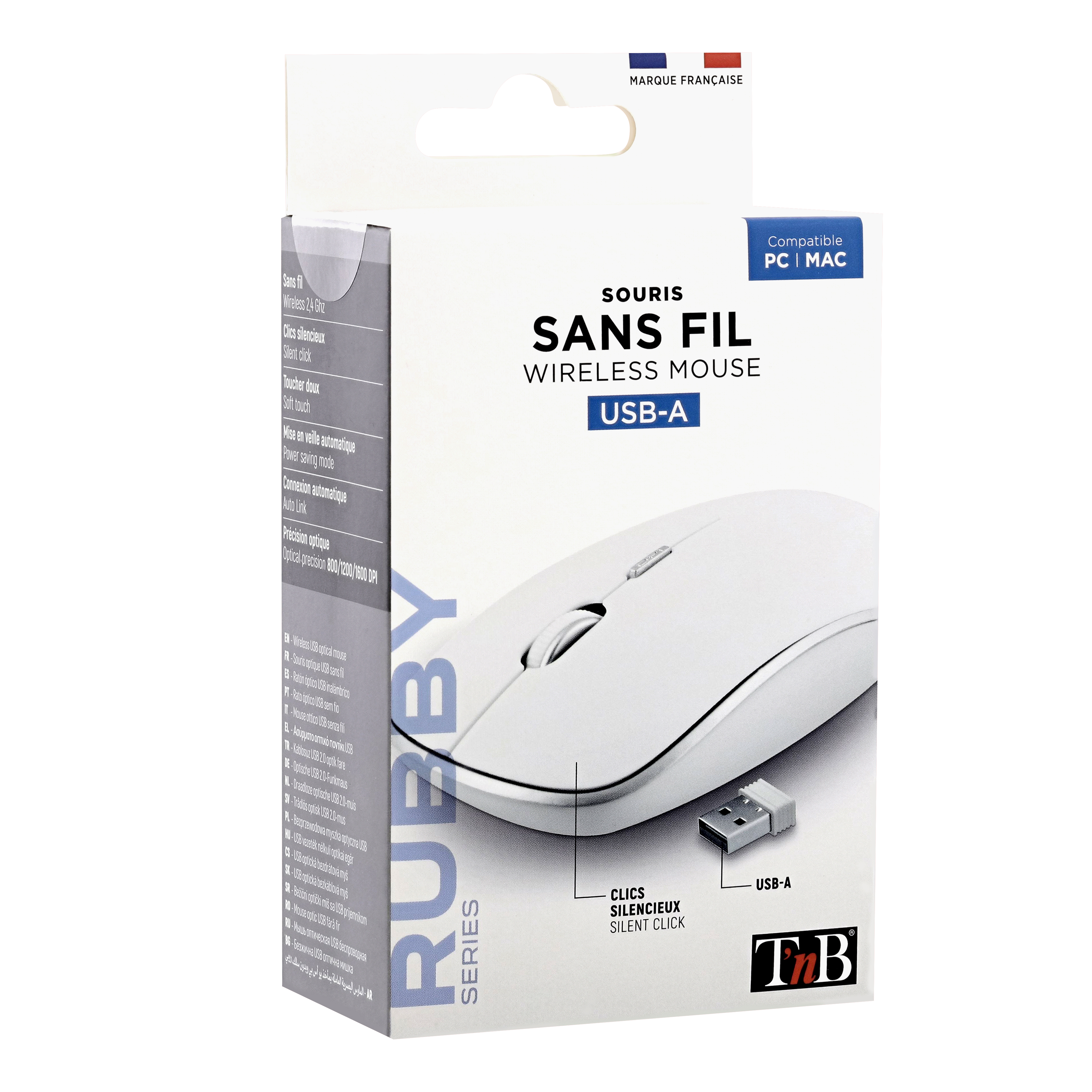 Wireless battery mouse with automatic sleep and ON/OFF button. Plug&Play, it connects automatically once the USB dongle is plugged into the computer. "Soft touch" coating. Silent click. Compact and modern design with a pleasant grip.
