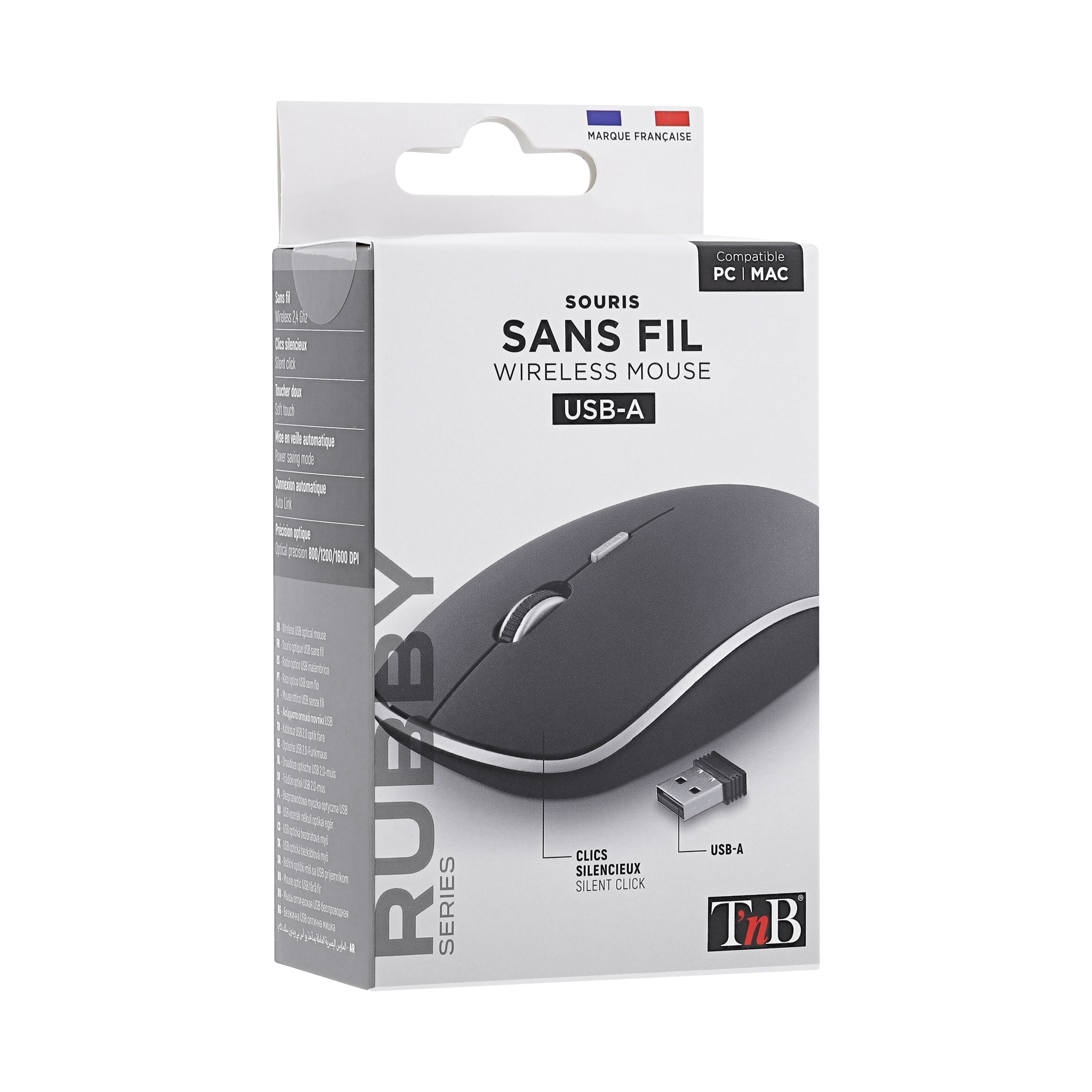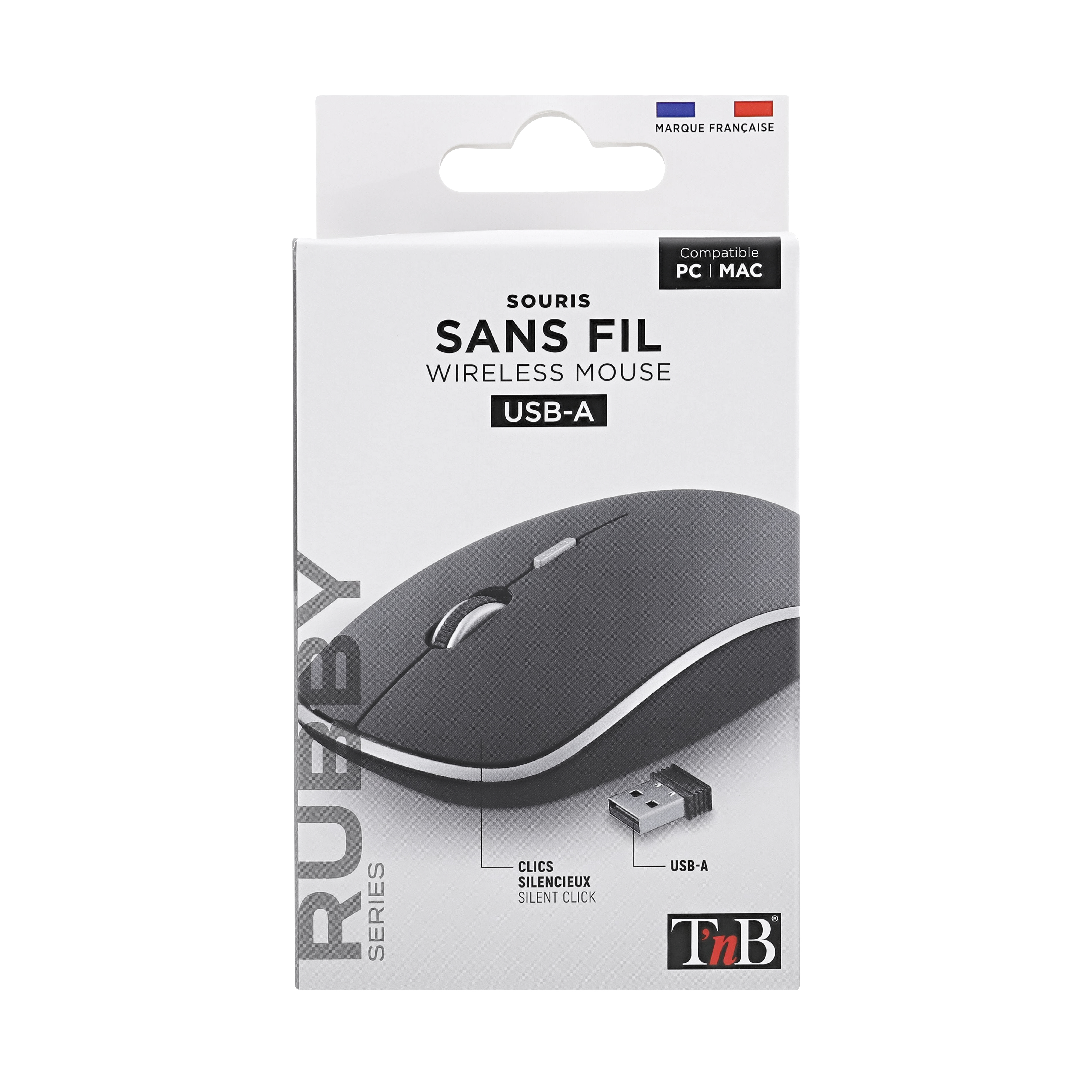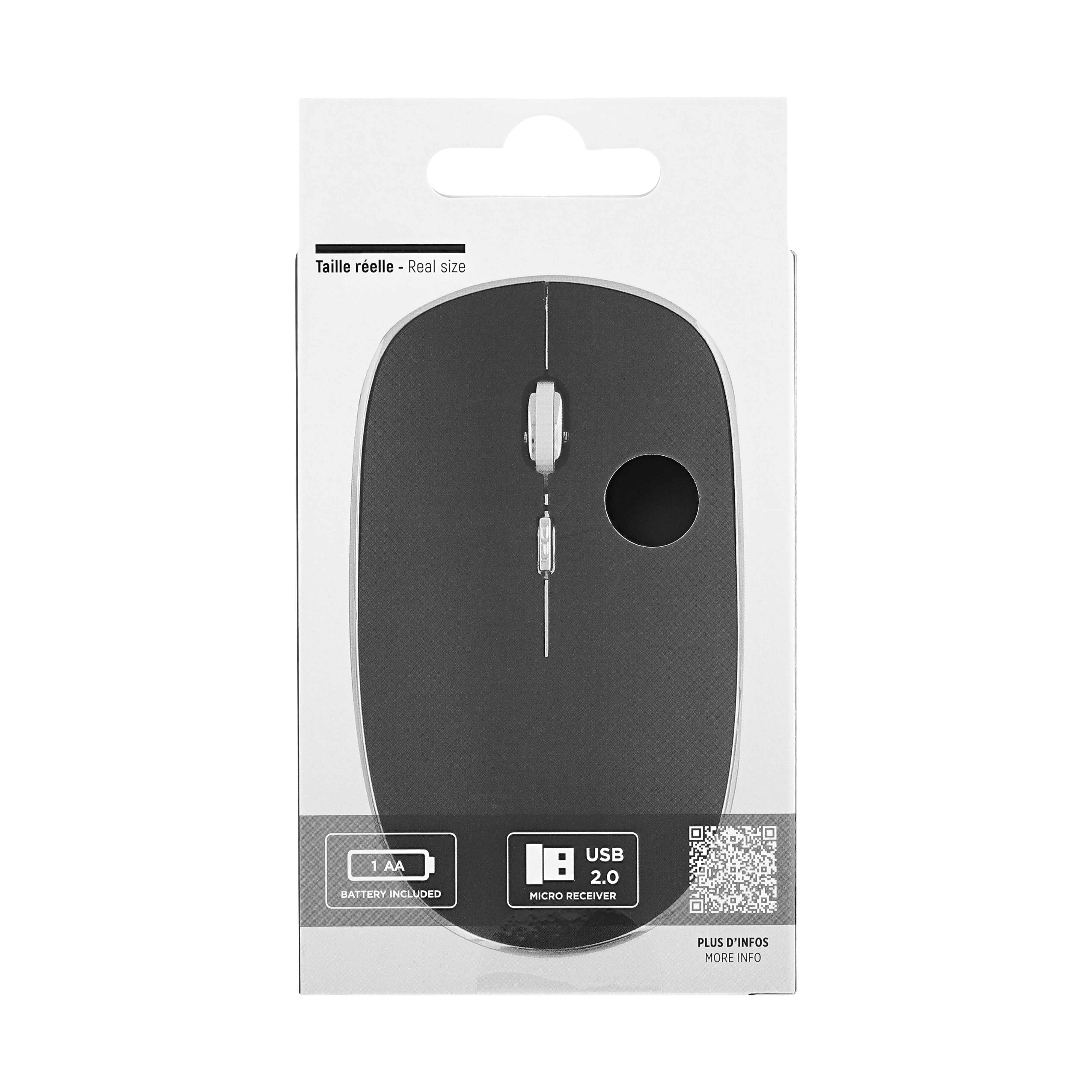 Wireless battery mouse with automatic sleep and ON/OFF button. Plug&Play, it connects automatically once the USB dongle is plugged into the computer. "Soft touch" coating. Silent click. Compact and modern design with a pleasant grip.