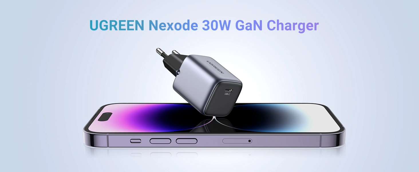 Ugreen 90666 Nexode 30W GaN Mini USB-C Charger. Charger type: Indoor, Power source type: AC, Charger compatibility: Universal. Input voltage: 100 - 240 V, Maximum output voltage: 20 V, AC adapter output current: 3 A. USB Type-C ports quantity: 1, Fast charging. Product colour: Black, Grey